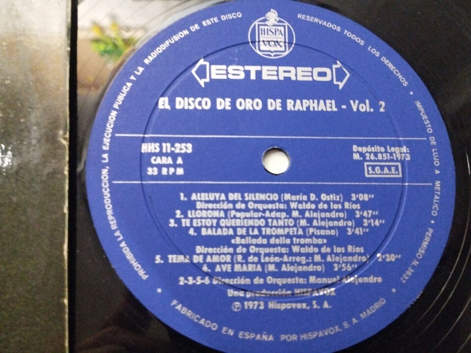 RAPHAEL el de DISCde Raphael Vol 2 1973 Hispavox - LPvinyl 12 "vg/vg