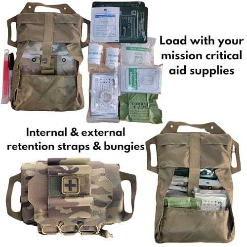 Product description: Be mission-ready with the Rapid Deploy Tactical IFAK Pouch and TMT Tourniquet Kit ? a rugged, modular system built for those who take bleeding control seriously. This combat-grade kit features a dual-layer rip-out pouch designed for fast access and easy MOLLE integration, empowering you to respond quickly when seconds matter. Outfitted with a Tactical Mechanical Tourniquet (TMT) ? recommended by the CoTCCC and made in the USA ? this kit offers one-handed application for confident use in trauma care and tactical situations. Unlike generic setups, this pouch was built from the ground up to accommodate both SOF-T tourniquets and CAT Gen 7 tourniquet formats, including cat tourniquet holder configurations and other tourniquet with holster options. Whether assembling your own stop the bleed kit with tourniquet and bag or enhancing a pocket tourniquet setup, the inner pouch features reinforced bungee cords and gear slots ideal for customized builds. Add essentials to tailor your own bleeding control kit, trauma kit with tourniquet, or full-spectrum IFAK with tourniquet loadout. Also included: a large mylar emergency blanket to help regulate body temperature and combat shock in the field ? essential for any bleed stop or bleeding control kit with tourniquet. Compatible with gear preferred by medics, law enforcement, and outdoor professionals, this system offers high adaptability for use in vehicles, rucks, or tactical belts. Build it your way ? and stay prepared.