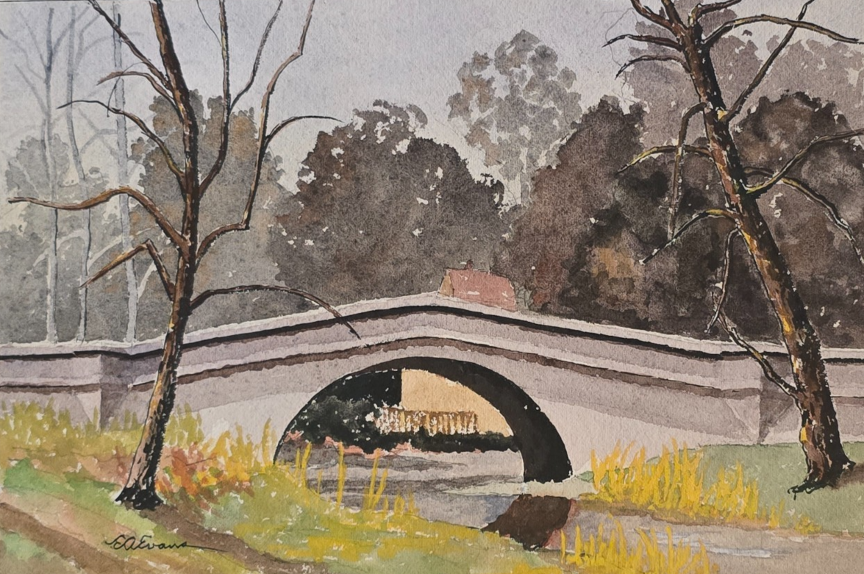 - Rare 1974 E.G Evans Arundel Romarc Bridge Sussex, New Jersey Watercolor Painting