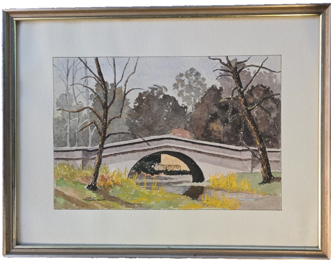 Rare 1974 E.G Evans Arundel Romarc Bridge Sussex, New Jersey Watercolor Painting