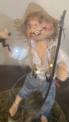 The Rare Annalee Dolls 1986 Huckleberry Finn Doll 10? Glass Globe #381 Limited Ed is a handmade 10-inch figurine depicting the character Huckleberry Finn from the collectible Annalee Dolls series. This unique piece is a limited edition sculpture featuring intricate details and engraved markings, making it a special addition to any collector's display. The dome-shaped glass globe adds a whimsical touch to this original fairy tale-themed figurine, perfect for any room and suitable for all occasions. This vintage piece from 1986 is a rare find that captures the essence of Huckleberry Finn in a beautifully crafted form.