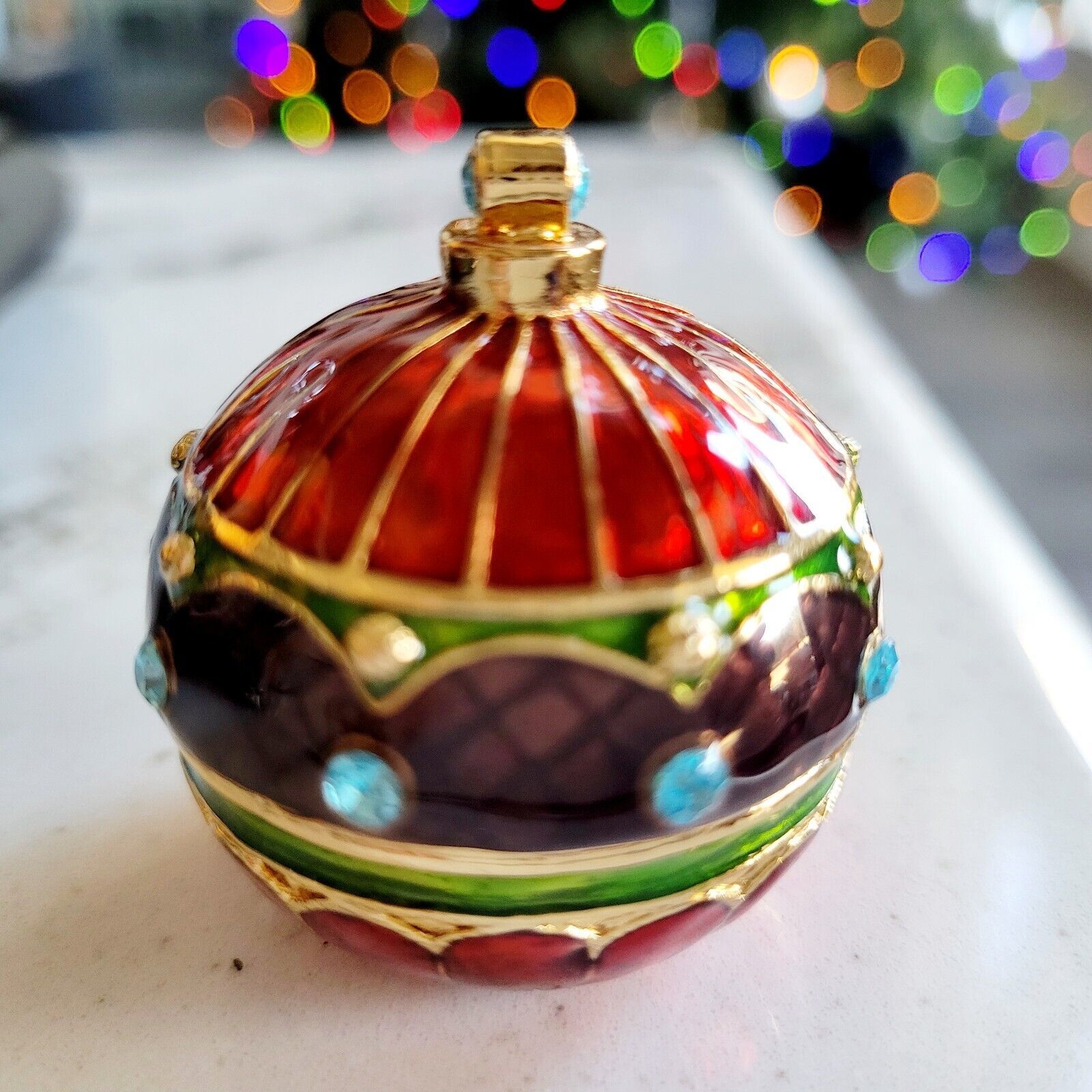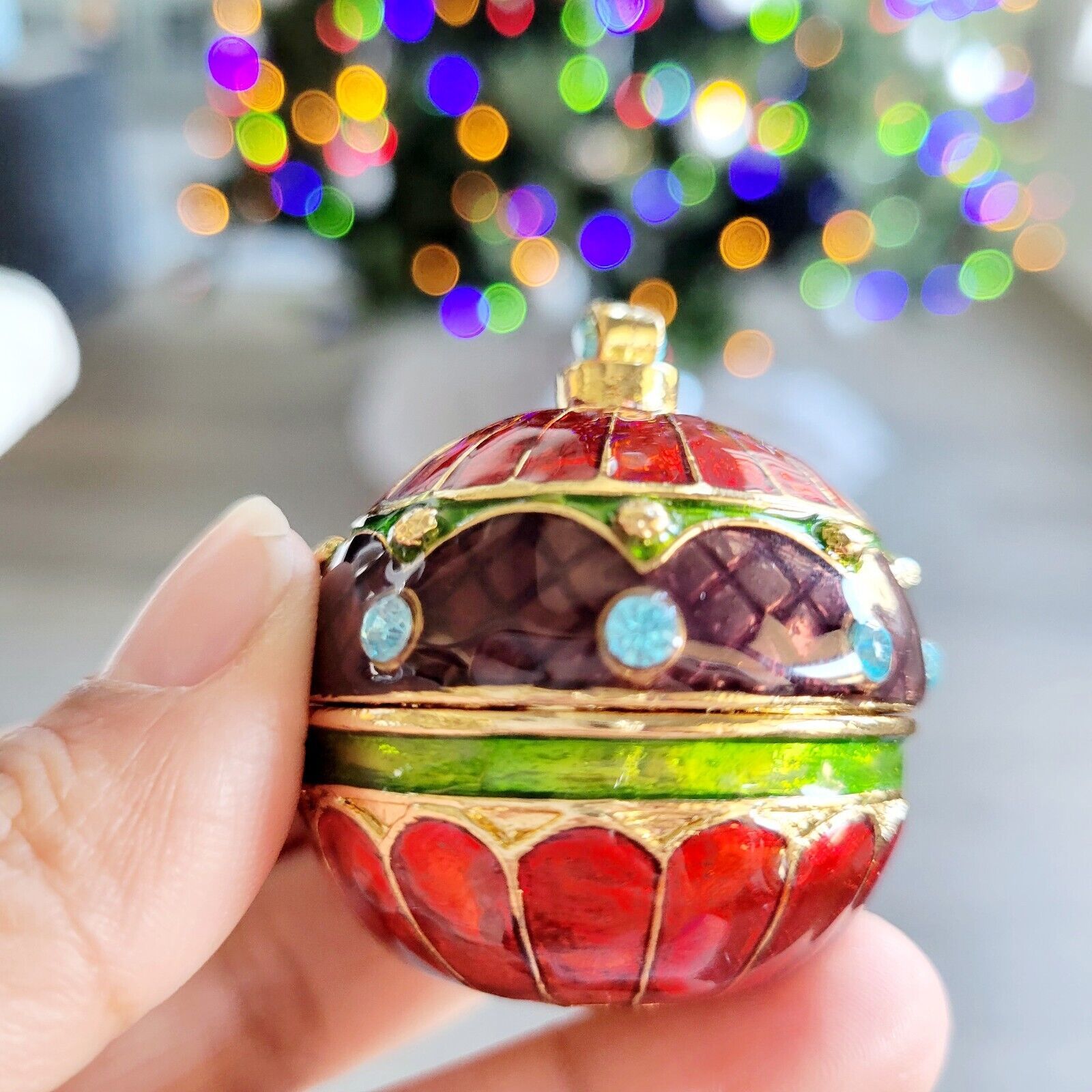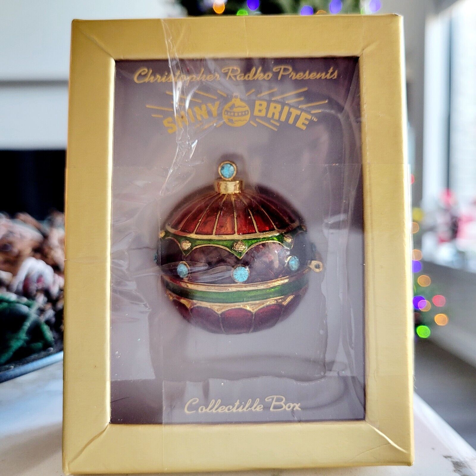 - Rare Christopher RADKO Jeweled Enamel Christmas Trinket Pill Box VTG SHIPS FAST!