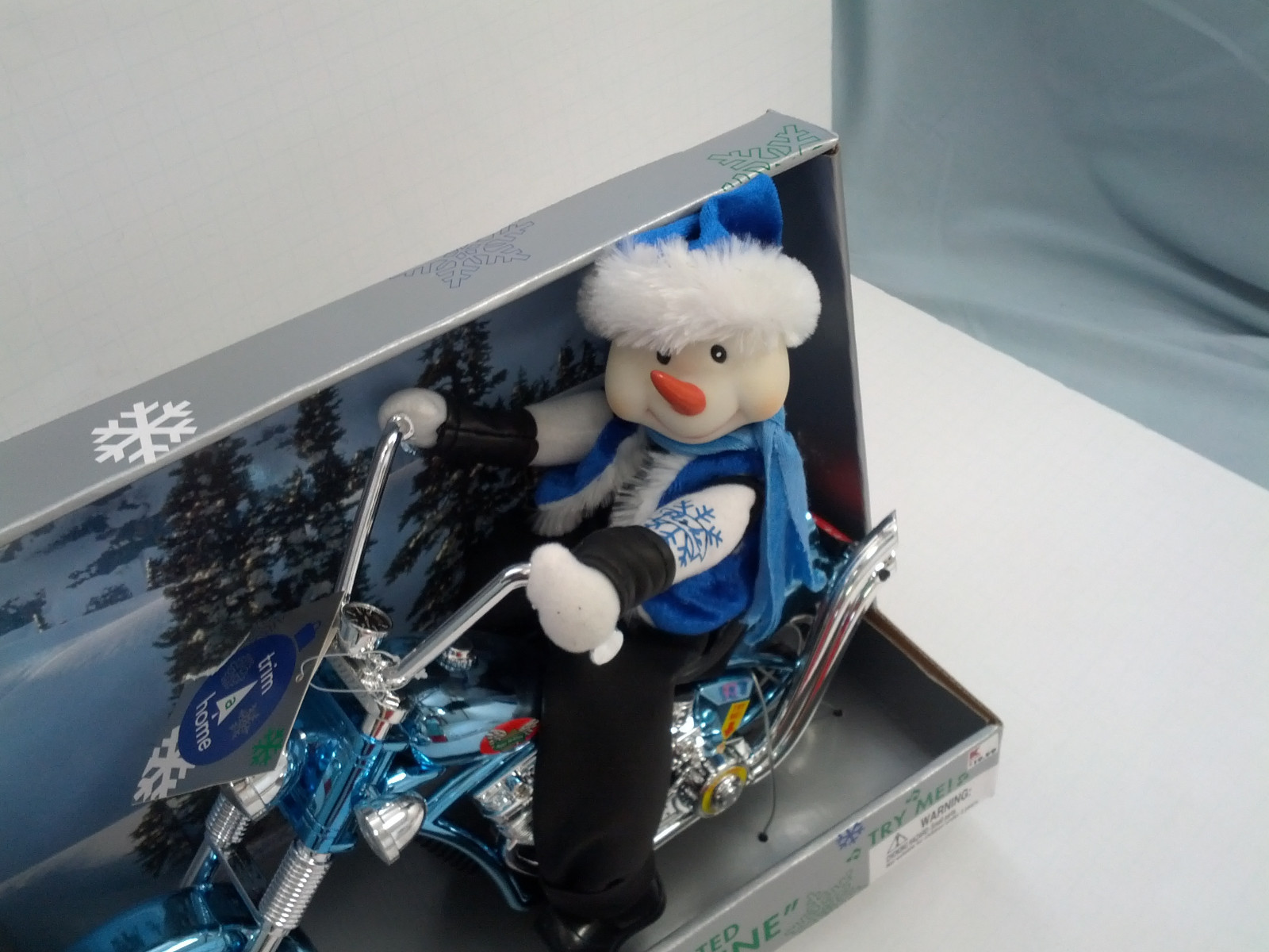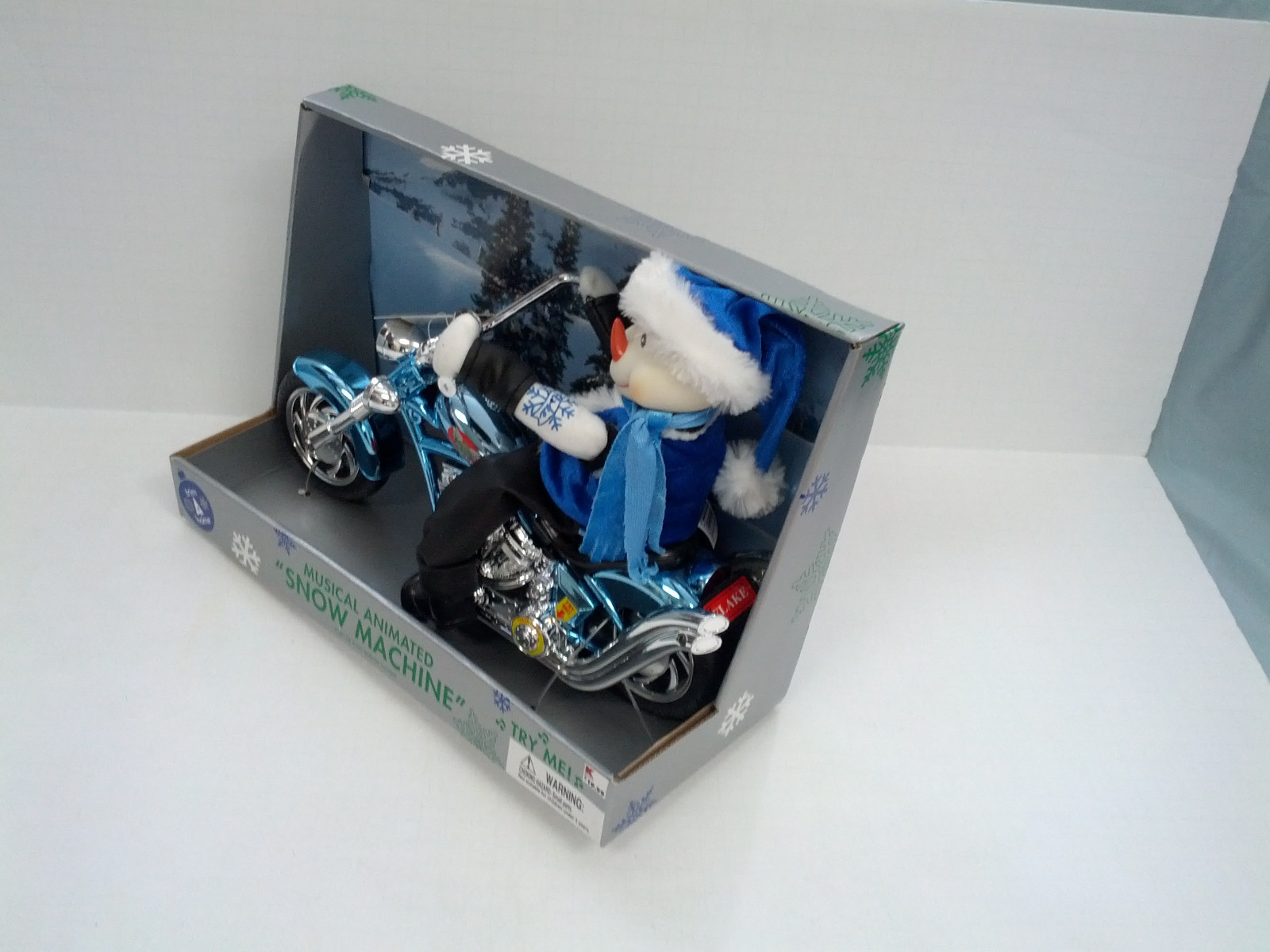 Rare Kmart trim a tree decor musical animated snow machine motorcycle snowman