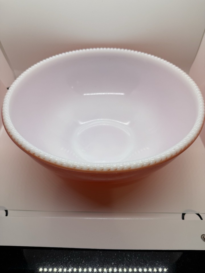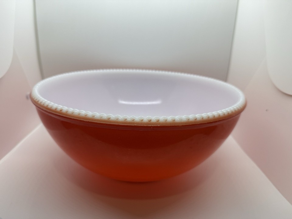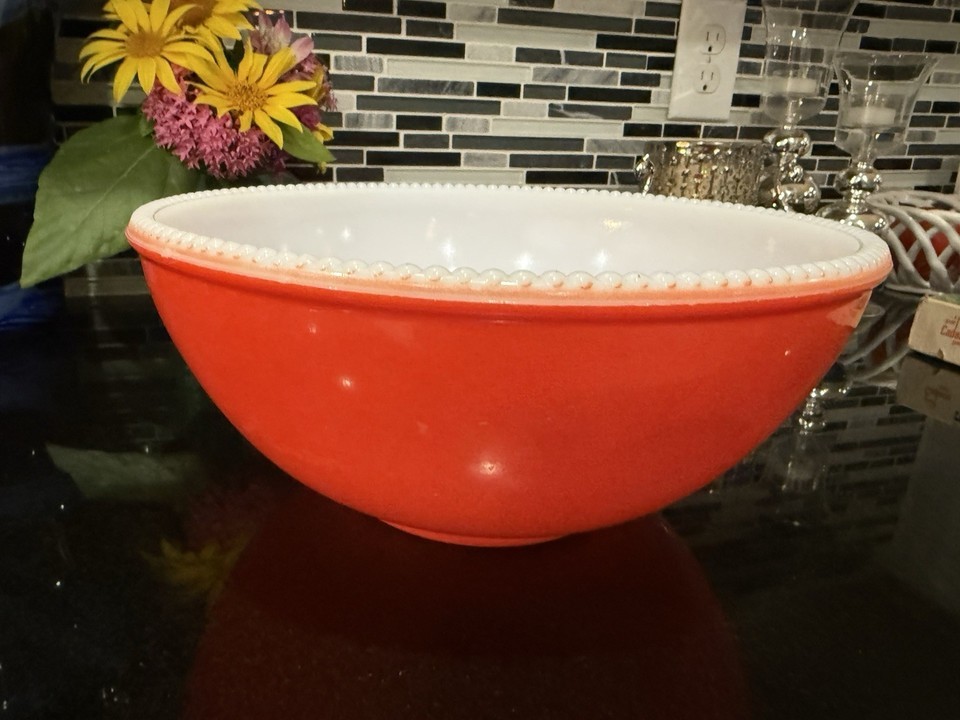 - Rare McKee Beaded Edge Milk Glass Red/Orange Large Mixing Bowl 11 1/4" Diam