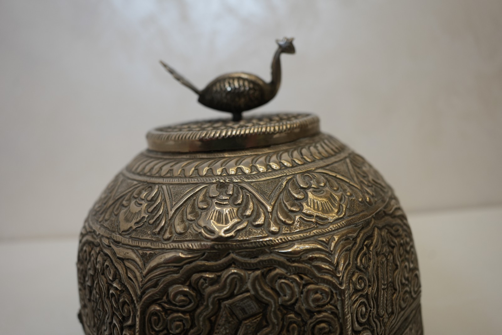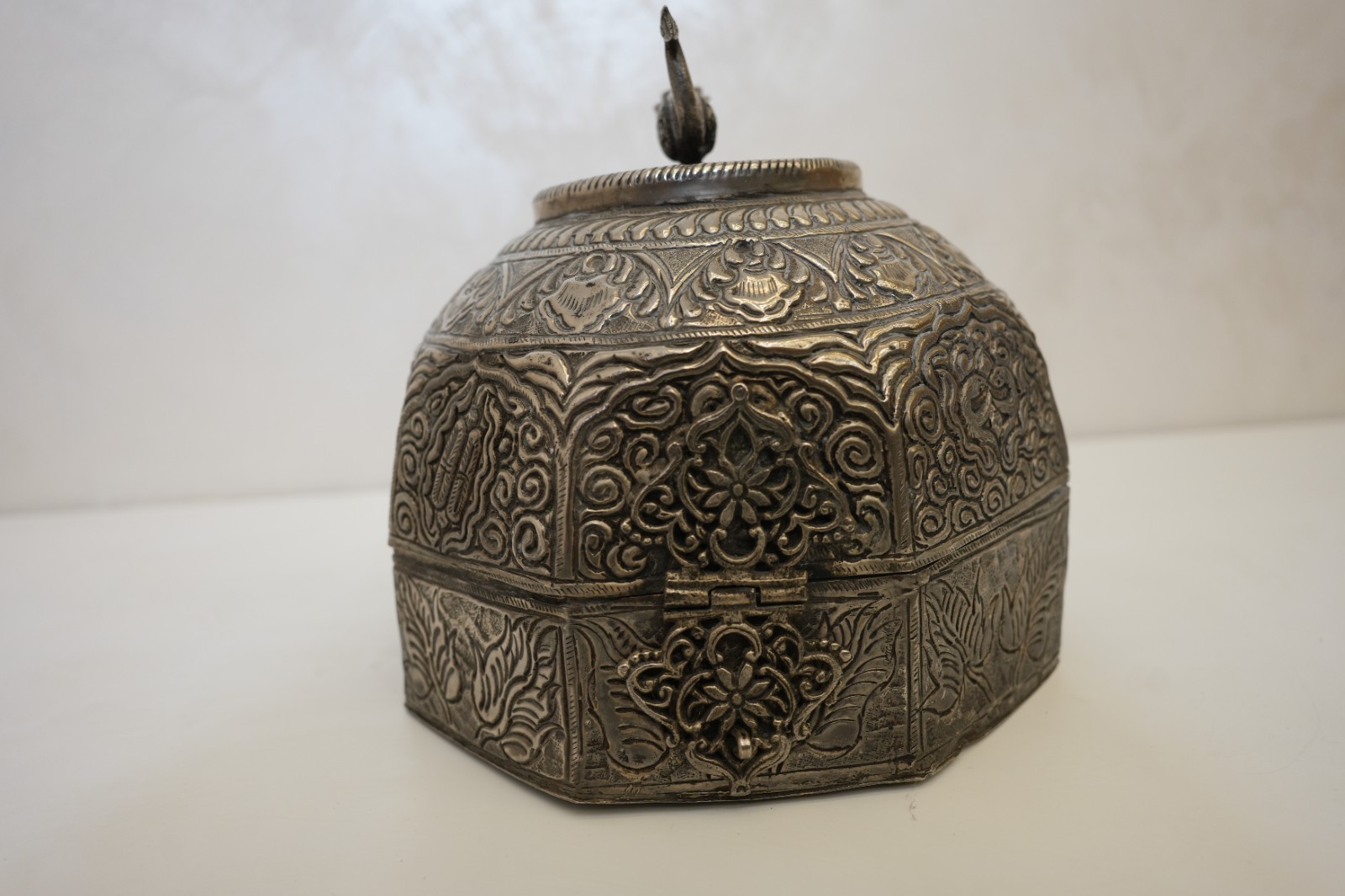 - Rare Moorish Handcrafted Ornate Silver-Toned JEWELRY TRINKET Box Peacock Finial