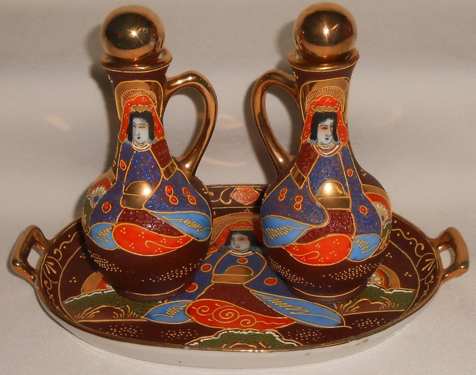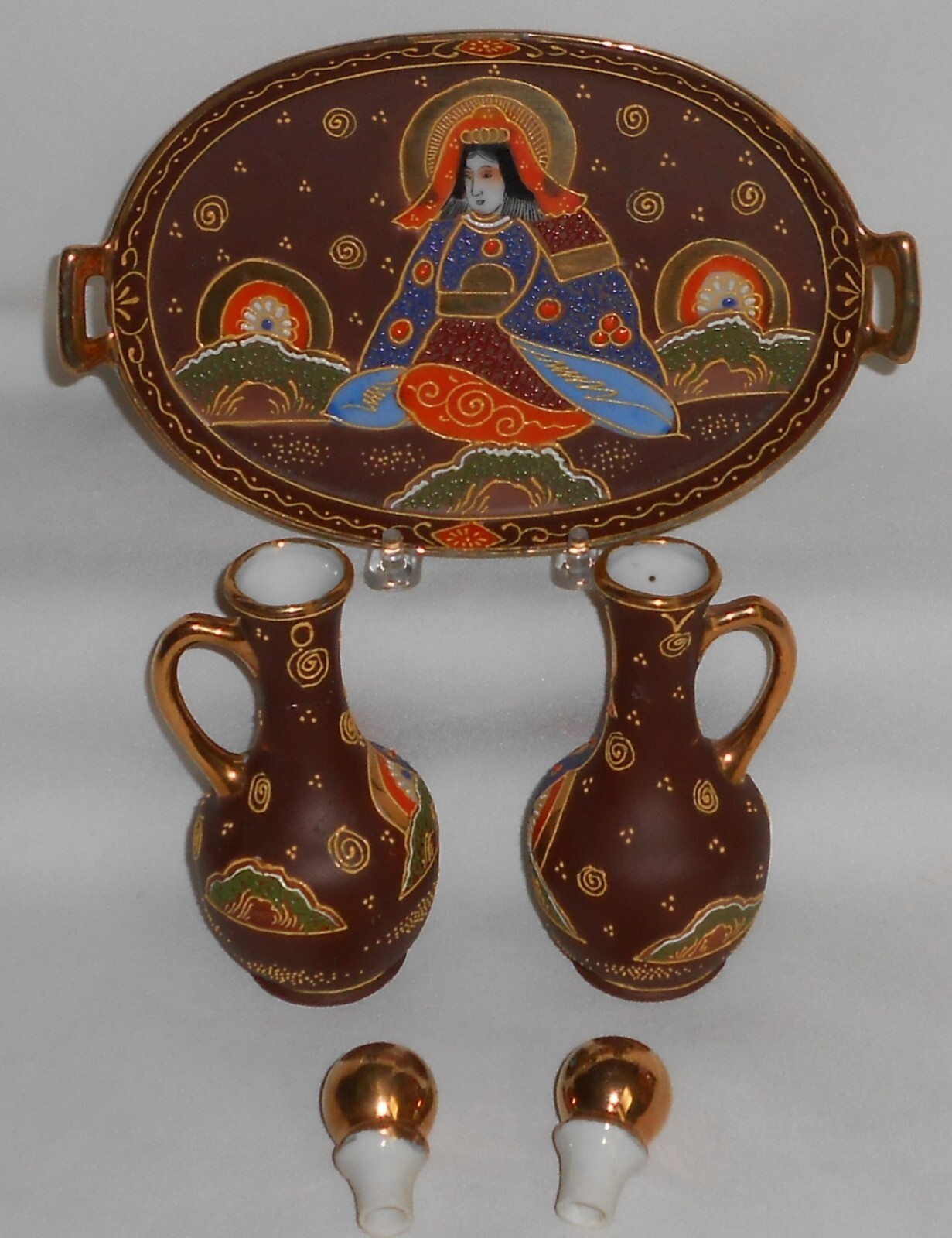 - RARE Moriyama 3 pc MORIAGE Oil/Vinegar w/Tray Set HAND PAINTED Made in Japan