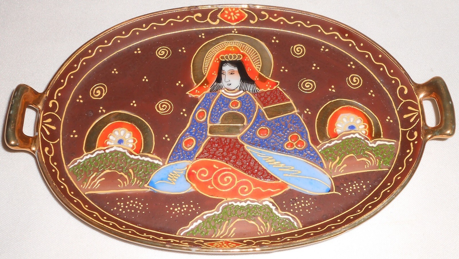This is a rare textured and colorful 3 pc Moriage Oil and Vinegar w/Tray Set from Moriyama and Made in Japan. The tray measures approx 9" x 5 5/8" and the Oil/Vinegar Bottles measure approx 5 1/4" tall to top of lid and they are all in good pre-owned condition with no chips or cracks.
