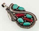 Rare! Navajo Sterling Turquoise Coral Double-sided pendant 93 mm Long