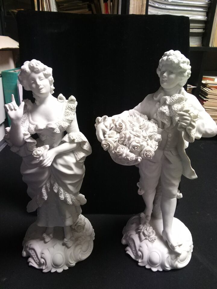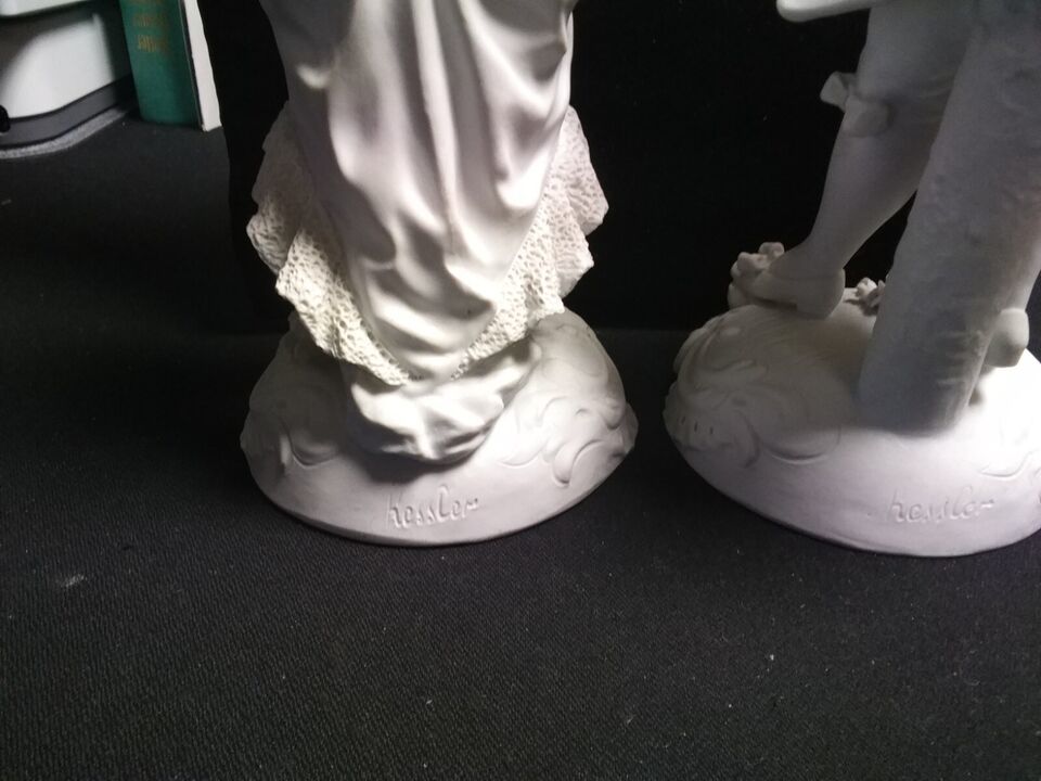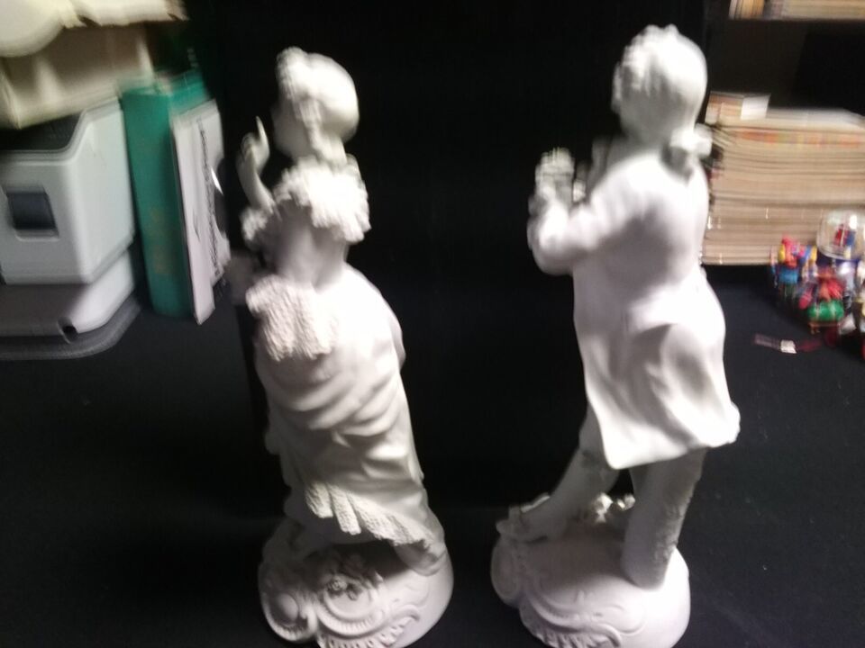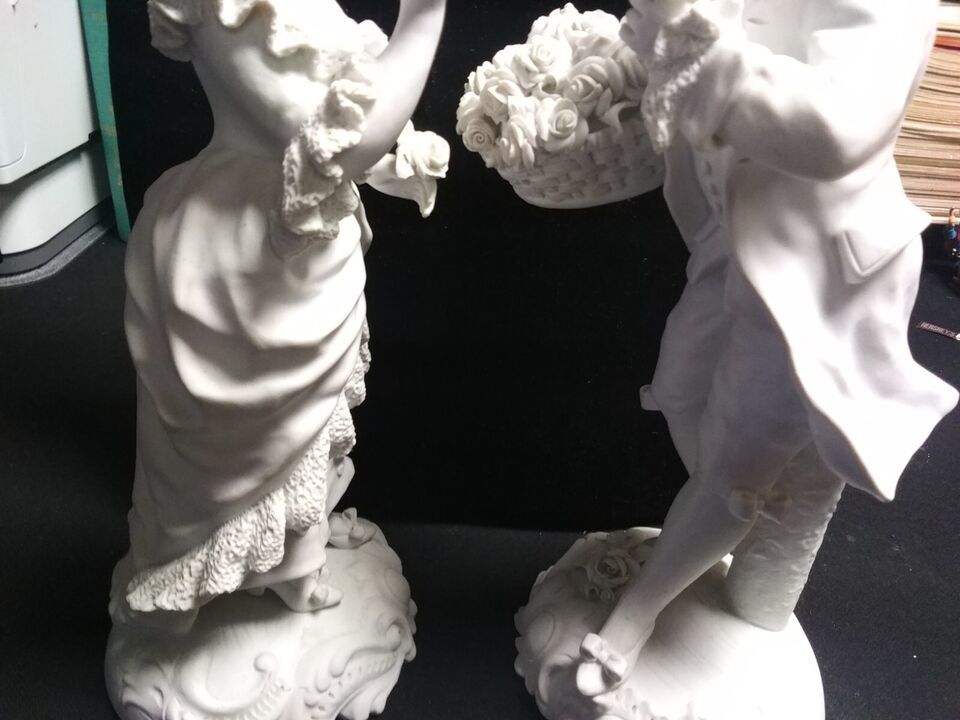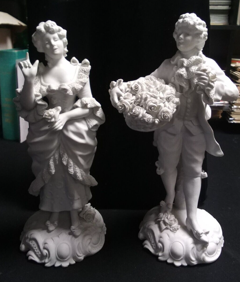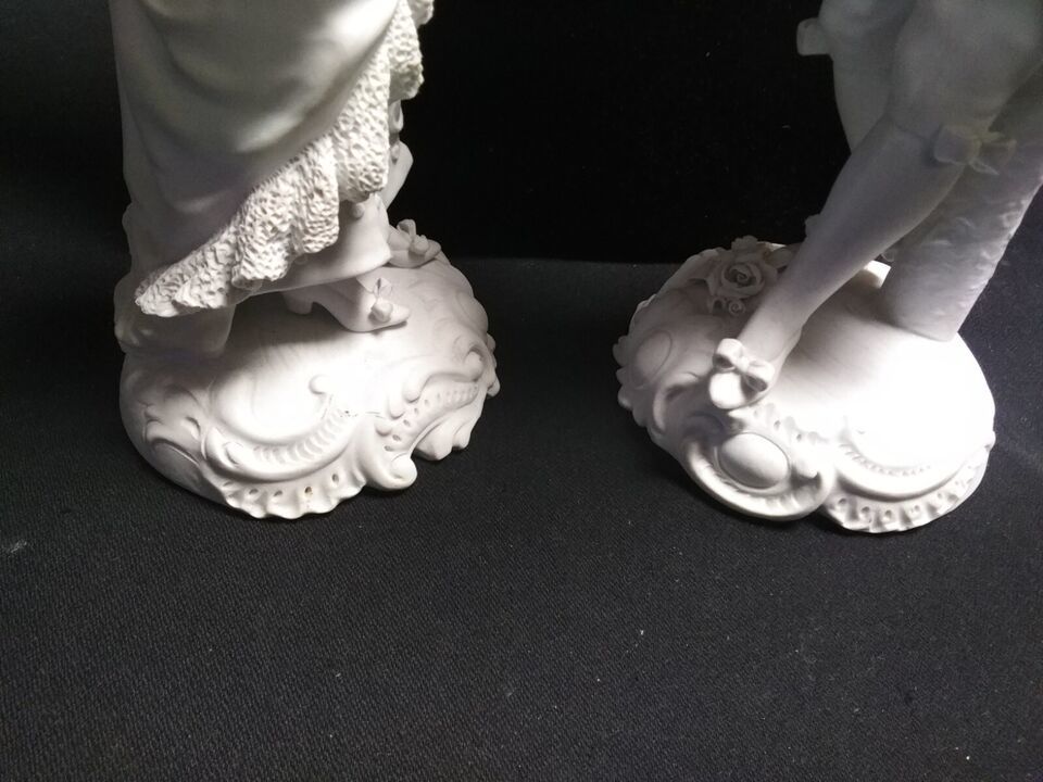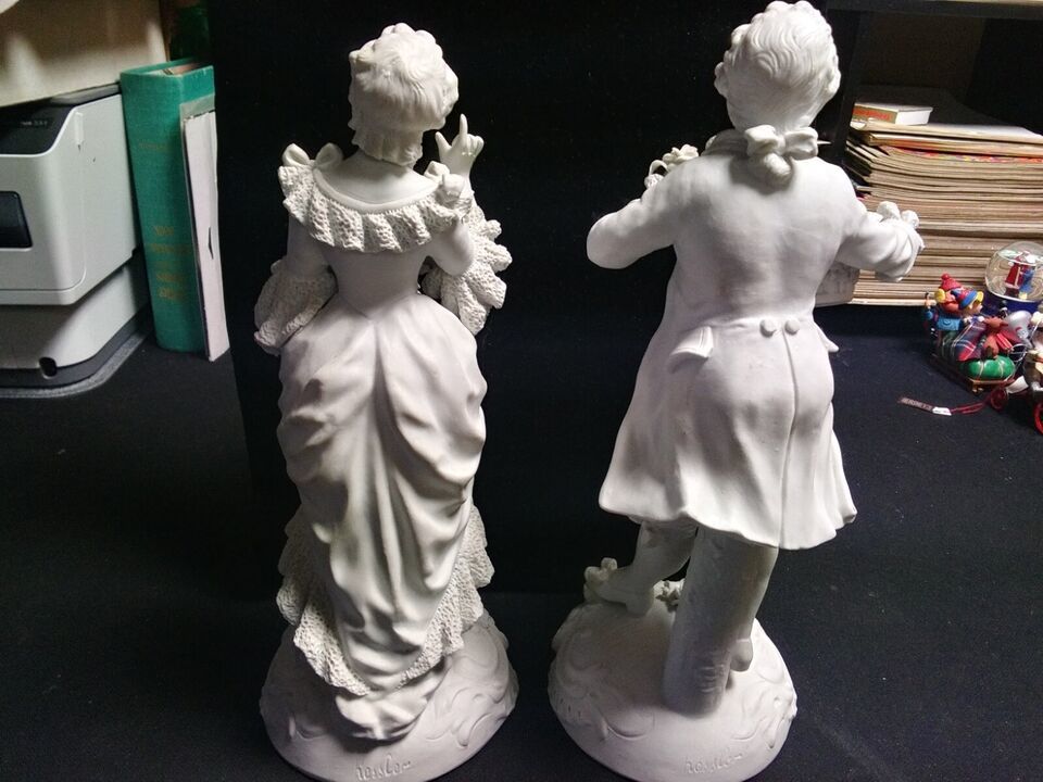 The figurines are large, measuring 12 1/2 inches in height. They are handmade and original These figurines are perfect for collectors and enthusiasts of sculptures and decorative collectibles .Rare Pair of Antique Signed Sevres Figures Bisque Porcelain 12 1/2? 13? h x 4? base dia.Finely modeled figures in eighteenth century French dress.