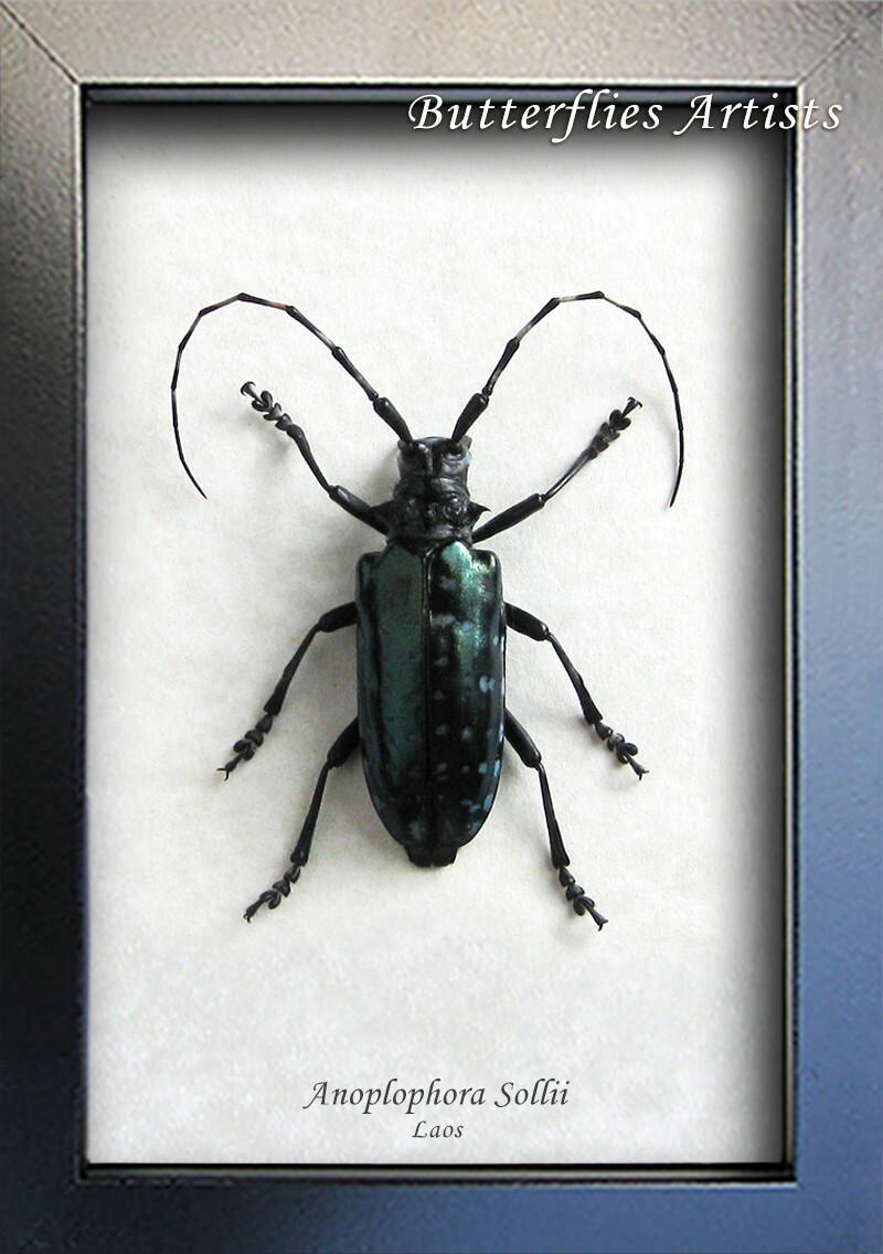- Rare Turquoise Longhorn Anoplophora Sollii XL Beetle Framed Entomology Shadowbox