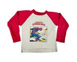 This is a genuine late-70s Marvel licensed shirt, with a classic ringer neck and sleeve trim. Though the tag is worn unreadable, the shirt measures as a Boys? Small (see below). The cotton is soft from wear, and the print retains strong vintage charm.
