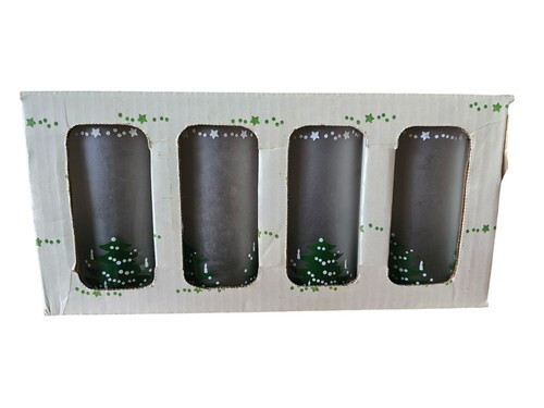 This vintage Tenbrooks 15 oz. tumbler is the perfect addition to any Christmas lover's collection. The green and white Christmas Heritage pattern on frosted glass adds a touch of mid-century modern style to your holiday decor. The four-piece set includes a straight-shaped tumbler that is unisex and original.