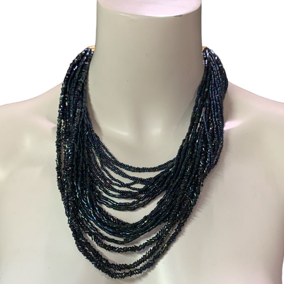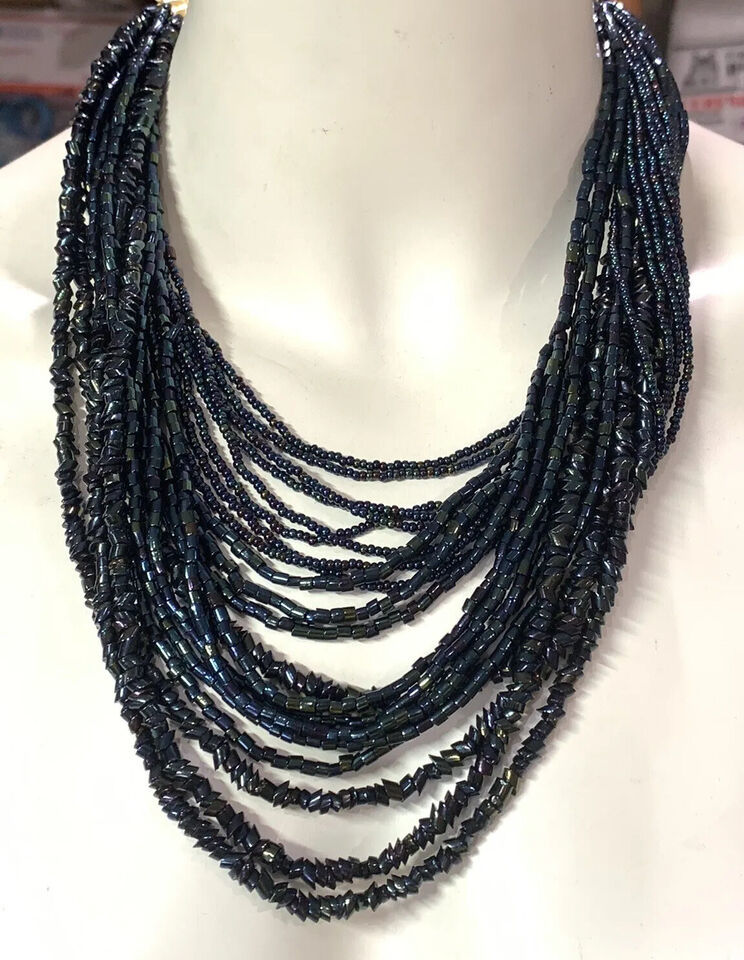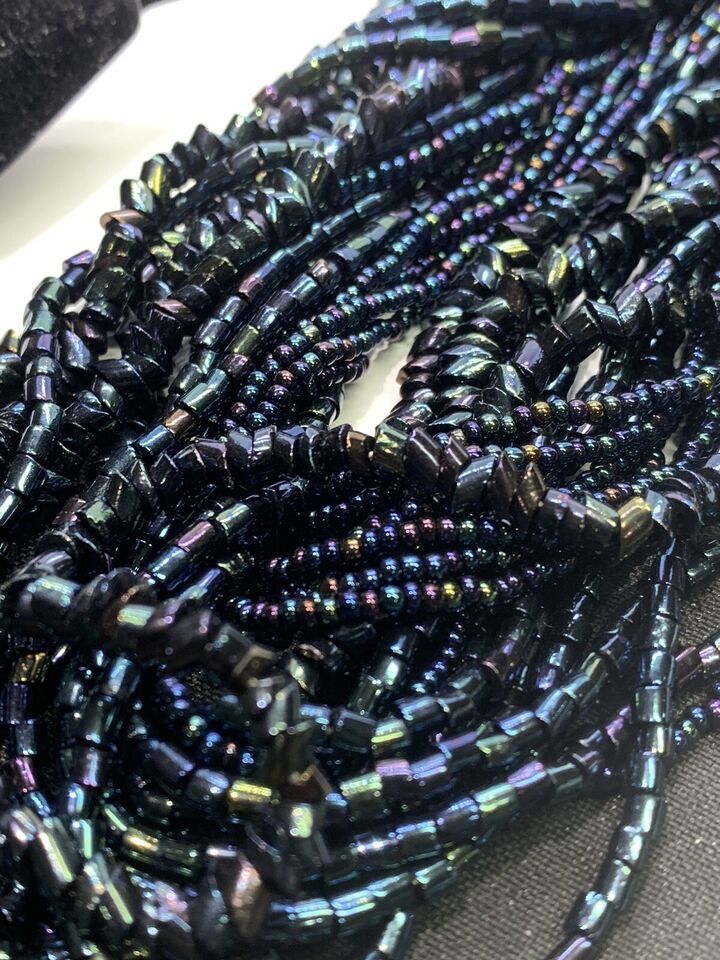 - Rare Vintage Torsade Necklace Tiny AB Carnival Glass Beads Chunky Wide 18”