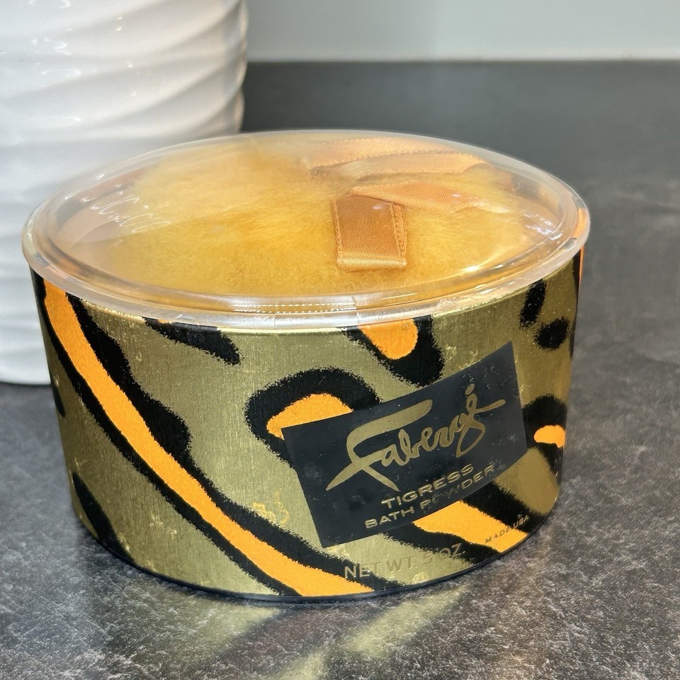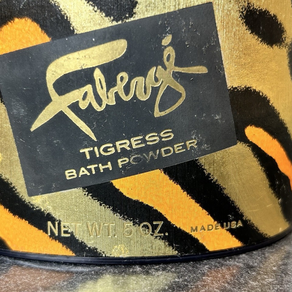 - RARE Vtg FABERGE TIGRESS Bath Powder 5 oz Orange Puff SEALED