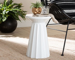 The stunning Wrenley end table adds a touch of elegance to any outdoor seating area. Crafted in China, this industrial piece is crafted from solid metal. Its flared pedestal base features a wavy, scalloped design rich with flowing geometric allure to brilliantly catch and reflect natural light. The Wrenley will arrive fully assembled and features a round tabletop perfect for displaying decorations or carrying afternoon drinks. A fantastic blend of form and function, the Wrenley end table is sure to uplift any patio, porch, or deck.