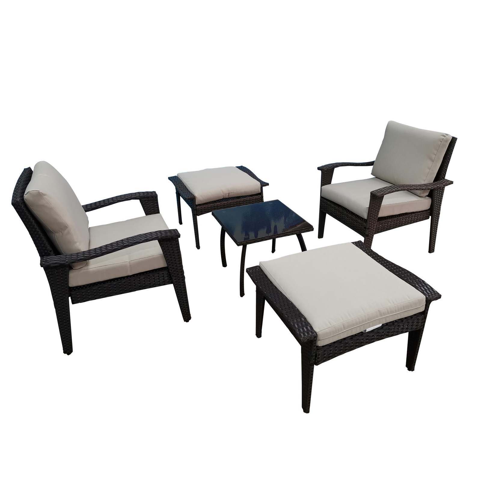 ?Outdoor Patio Furniture Set?Lean back and relax in a brand new backyard transformed by our 5-Piece PE Rattan Patio Furniture set, designed to enhance your outdoor space and allow you to fully relax and unwind. This outdoor rattan conversation furniture set is a modern and fashionable piece and will automatically upgrade your patio space.