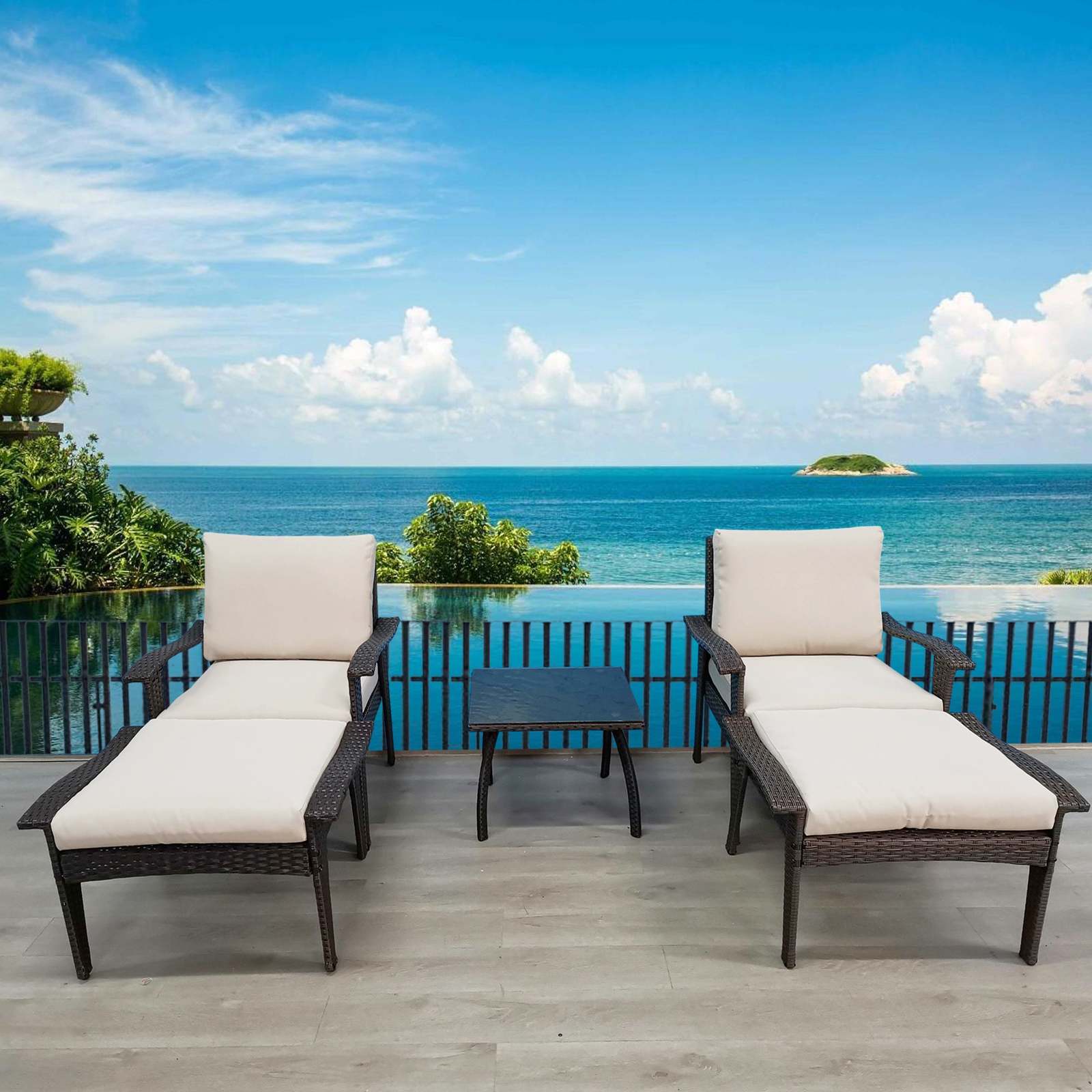 - Rattan Wicker Patio Lounge Chairs - 5-Level Adjustable Outdoor Chaise