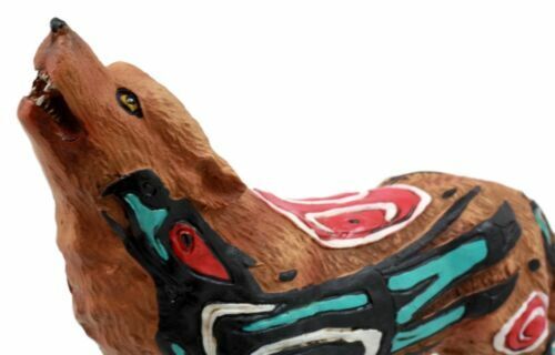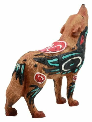 - Raven Crow Scavenger Native Tribal Howling Wolf Totem Spirit Figurine 6.25"L