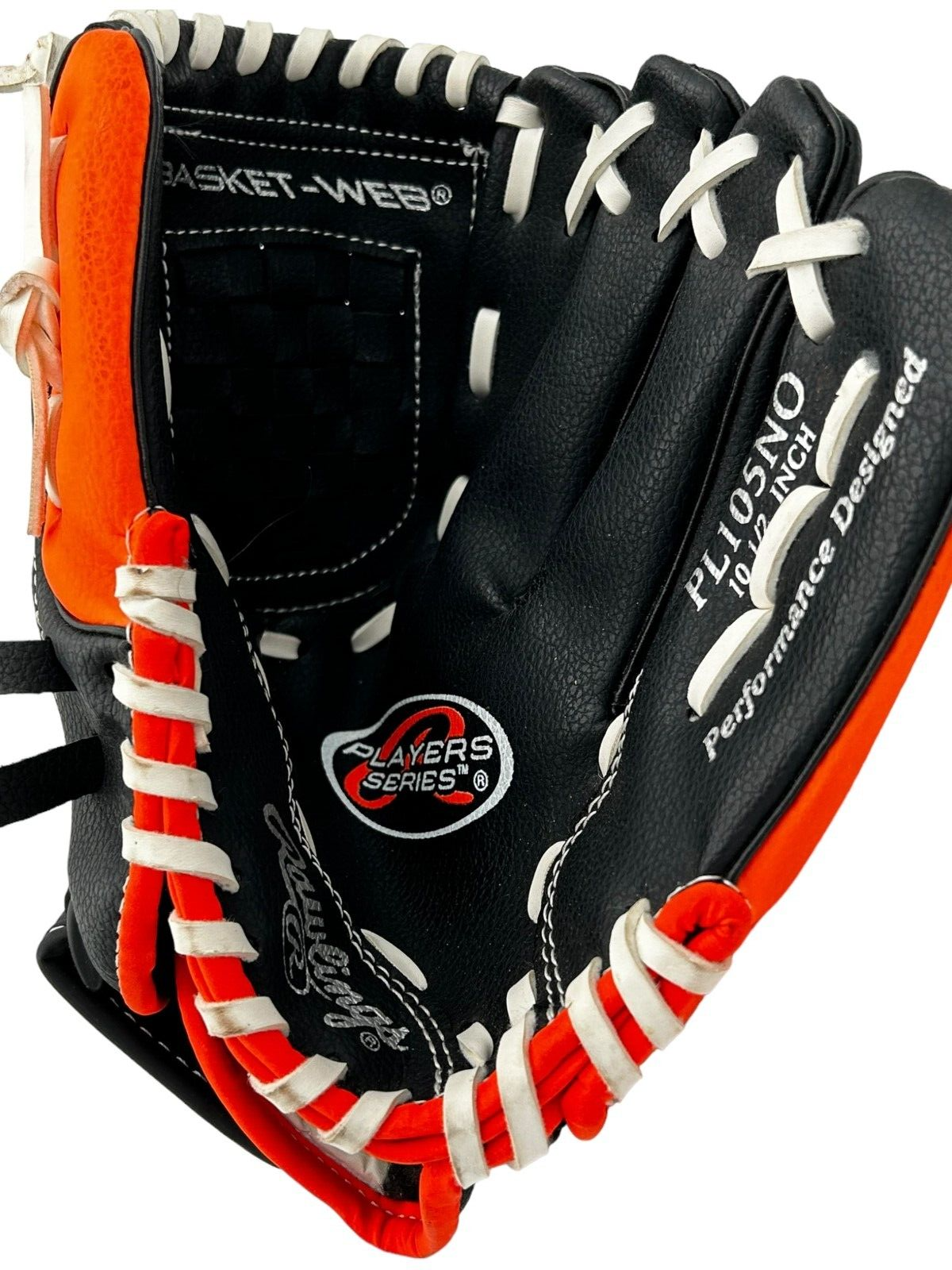 - Rawlings PL105NO 10 1/2" Player Series RHT Youth Baseball Glove Orange Black