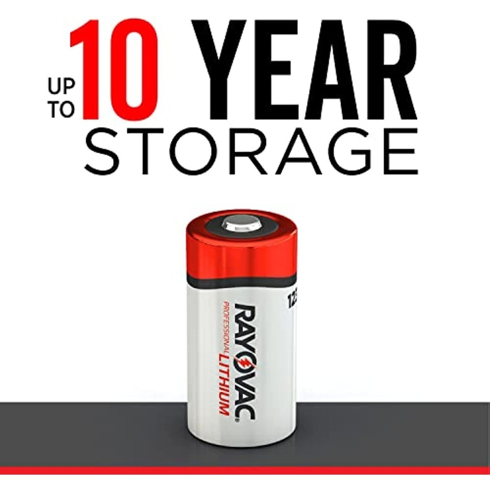 Rayovac 123A Batteries provide the power that captures the moment. Great for cameras, Rayovac Photo Batteries deliver long-lasting power that keeps professional equipment going. CR123A lithium batteries also serve as a powerful, compact energy source for flashlight batteries, along with specialized items such as a home security system or hunting accessories. This pack of 123A lithium batteries holds power for up to 10 years in storage?providing the dependable shelf-life you expect from a Rayovac 123A battery. For the devices you use each day, trust Rayovac for excellent performance and value.