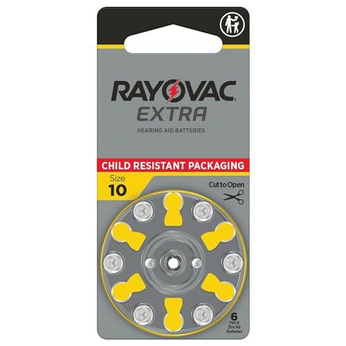 Product description: RAYOVAC 10 batteries are formulated to provide quality performance over the life of the battery and deliver more power when you need it. Hearing Aid Batteries are packaged in NEW certified Child Resistant packaging. Whilst 100% child resistant in testing**, the packs are senior-considerate** and can be easily opened by users in seconds, using scissors.