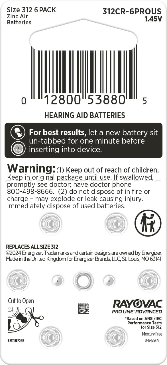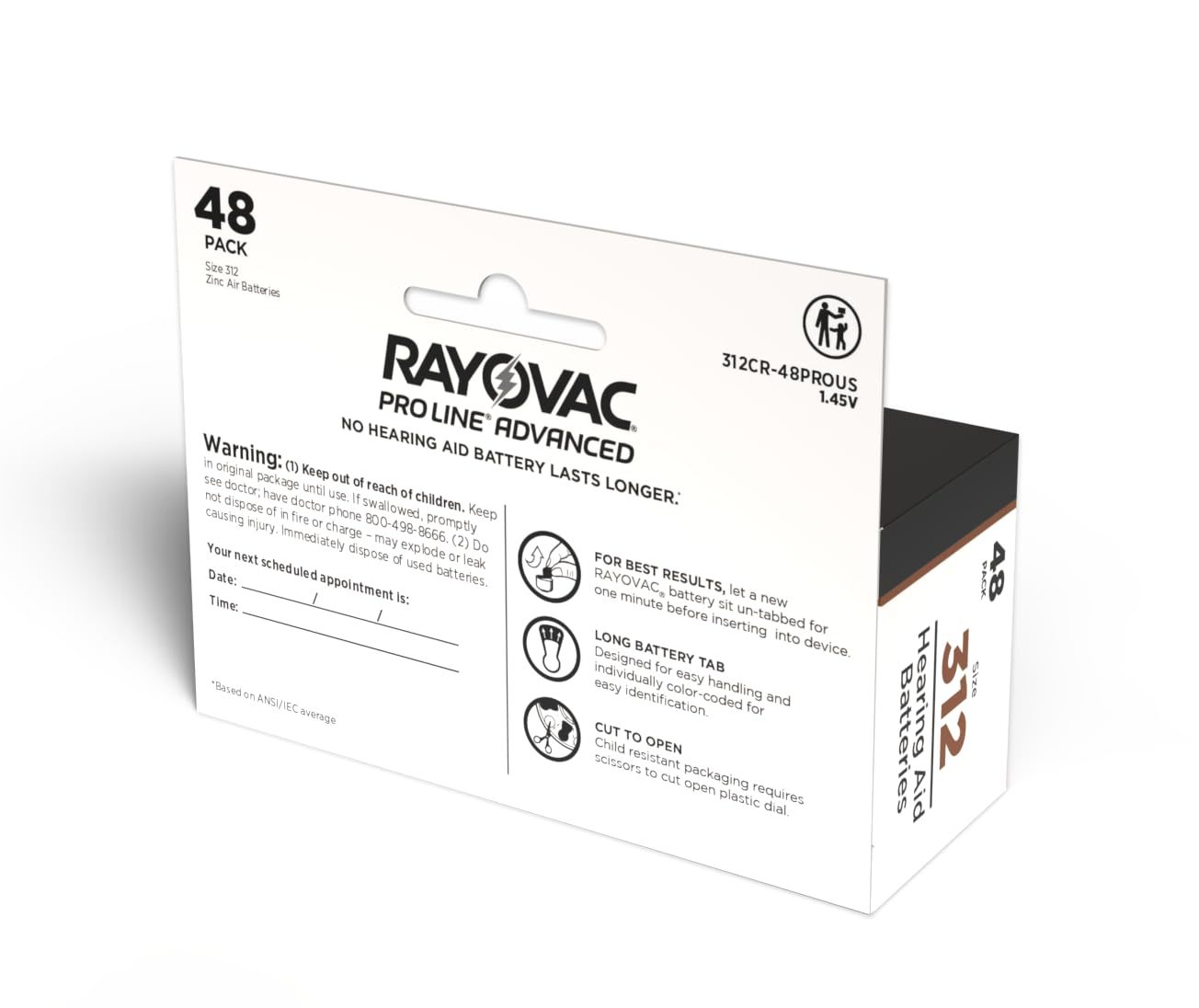 - Rayovac Proline Advance Hearing Aid Batteries, Size 312 (96 count)