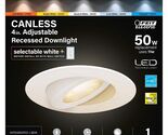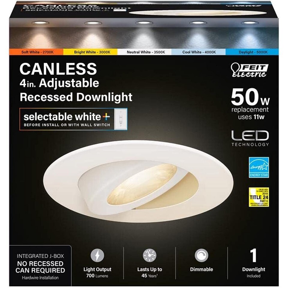 Lighting adds elegance, style, sophistication and beautify your home or office spaces. Lighting is the most integral part of any interior space. The right lighting makes even the modest of space look bigger and classy. Features. This light features an tethered JBox and builtin trim for installation directly into finished ceilings without recessed cans. Recessed LightingSpecifications. Color White. Average Life 50000 hr. Ceiling Opening Size 4. Color Rendering Index C R I 90. Finish Frost. Housing Type Recessed Can. Lamp Type LED. Lumens 700 Lumens. Material Aluminum/Plastic. Mounting Type Ceiling. Recessed Can Diameter 4. Trim Type Gimbal Retrofit. Voltage Rating 120 V. Wattage Rating 50W. Casing Material Aluminum. Aperture Width 4. Volts 120. Energy Star Certified Yes. Adjustable Yes. Weight 0.9 lbs