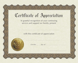 Ready-To-Use Certificates Appreciation Ivory/Brown/Gold Colors with Brown Border