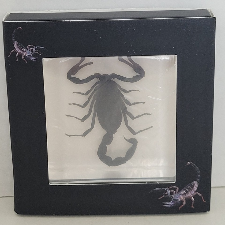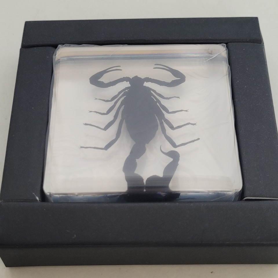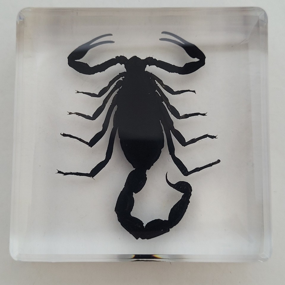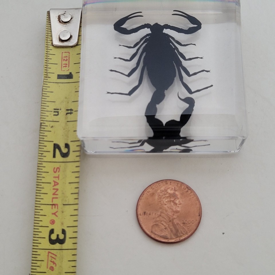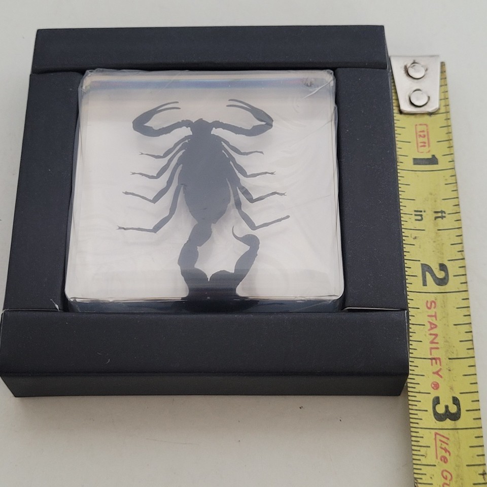 - Real BLACK SCORPION Genuine INSECT Paperweight Lucite Paper Weight Small Desktop