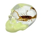 - Real GOLDEN SCORPION In Skull Genuine INSECT Glow In Dark Lucite Paper Weight