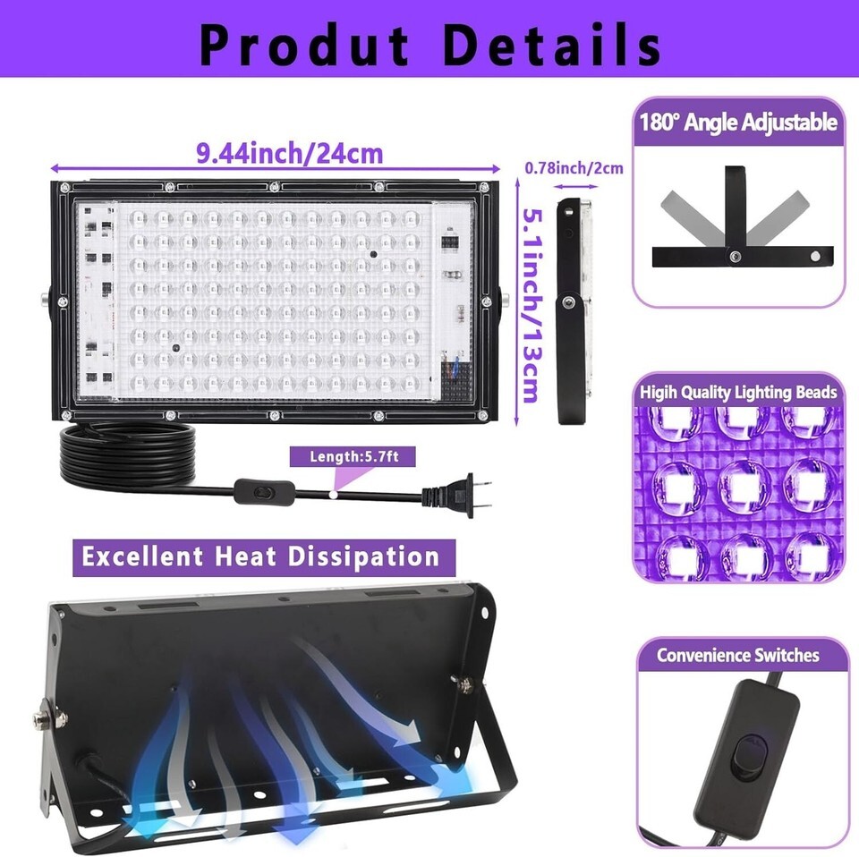 Features: 50W,UV exposure lamp,uniform illumination,reduced curing time,adjustable height,adjustable angle,1-20 inch distance,360 rotation,high-transmittance glass cover,120-degree projection angle,easy power switch,non-slip design,stability,easy disassembly,wavelength of 395nm,exposure time of 3-5 minutes,360 rotation for even curing,easy power switch design,1.8-meter US standard plug,weight of stand: 950 grams,exceptional stability