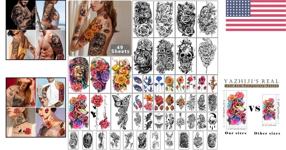 - Realistic Waterproof Temporary Tattoos – 49 Sheets of Floral and Animal Designs