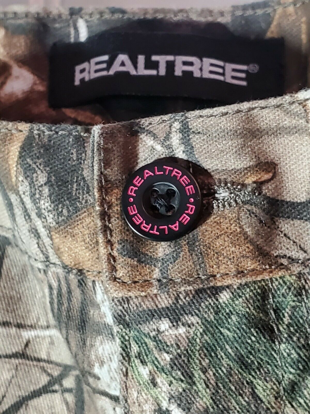 See pictures, pink symbol, Realtree Men’s Camo 6 Pocket Pants Size XXL 44-46 32 inseam P2
