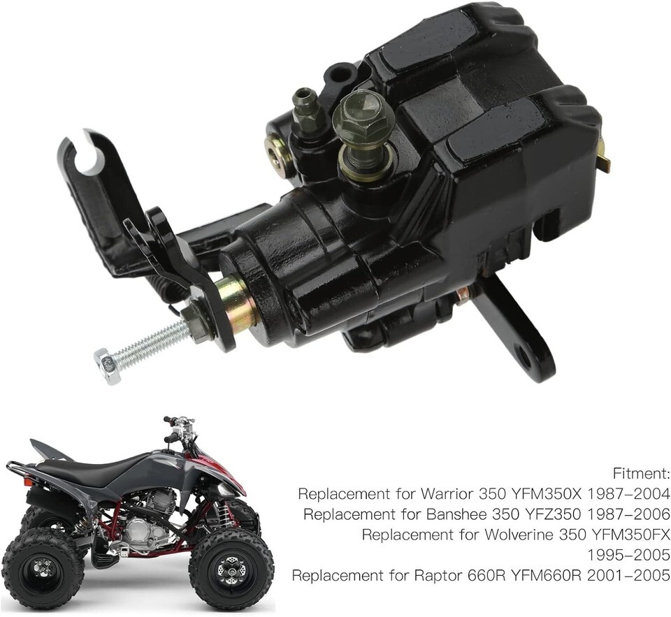 Rear Brake Caliper, 1UY?2580W?01?00 Aluminum Alloy Motorcycle Part Description Thank you for taking the time to look at the items in my store. Below are some specific details regarding this item and the way I do business. Happy Shopping!!! This high-quality rear brake caliper assembly is a must-have for any Yamaha ATV enthusiast. Made of durable aluminum and metal materials, it is designed to fit perfectly with Banshee 350 (1988-2006), Warrior 350 (1987-2004), Blaster 200 (2003-2006), Raptor 660R (2001-2005), and YFG350H_MNH 1996 models. The package includes a bracket and is covered by a manufacturer's warranty of 1 year. This hydraulic brake caliper assembly is compatible with Yamaha and features OE/OEM part number 1UY-2580W-01-00. In addition, it has interchangeable part numbers 1UY-2580W-00-00, 1UY-25810-51-00, and 1UY-25810-50-00. Don't miss out on this great opportunity to upgrade your ATV's braking system and improve your riding experience. This item is BRAND NEW, WITHOUT PACKAGING OR ACCESSORIES. The packaging may have any of the following: retail price tag, sticker residue, product labels, or other stickers. Package may have shelf wear or damage. Please review all pictures prior to purchase. If you have any questions or concerns, please message me prior to purchasing. I will ship within one-business day of receipt of payment. It will be shipped via USPS Ground Advantage. I leave positive feedback once payment is made. I would ask you return the favor once you are in possession of your item. Specification: Item Type: Rear Brake Caliper Material: Aluminum Alloy OEM: 1UY-2580W-01-00 or 5LP-2580W-10-00 Application: Improve braking performance and return to a new state Fitment: Replacement for Warrior 350 YFM350X 1987-2004 Replacement for Banshee 350 YFZ350 1987-2006 Replacement for Wolverine 350 YFM350FX 1995-2005 Replacement for Raptor 660R YFM660R 2001-2005 Payment Shipping Returns At this time, PayPal is my preferred method of payment. I do not require immediate payment, however, I would request that handle that within 48-hours of purchase. I will ship within one business day of receipt of payment. As always, the details in the listing superceed this information. If free shipping is offered, the following are the policies I abide by. For items that are not Free Shipping, the shipping information will be provided in the listing. I upload tracking information for all items. I use to print and ship. MEDIA: Books, DVDS, Video Games, Records and Video Games will always be shipped via Media Mail. Multiple purchases will be combined together and sent via Media Mail. NON-MEDIA: Other items will be shipped via First Class Mail, unless weight exceeds 16oz. Then another method will be chosen. Most often Priority Mail, but bigger items may ship via Federal Express Smart Post or UPS Ground. INTERNATIONAL SHIPMENTS: These are never free shipping. Shipping is calculated based on location and will be shipped via First Class Mail, unless weight exceeds 1lb. Then it will be shipped with the most economical method. We hope you will love your purchase, however if you need to return it, we have a 60 day return policy. listing template by 3Dsellers.com - Try for Free!