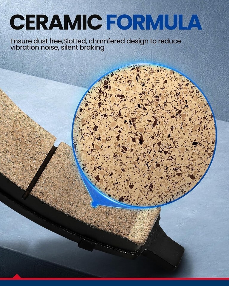 Ceramic brake pads operate quieter than traditional metal pads and offer twice the lifespan.