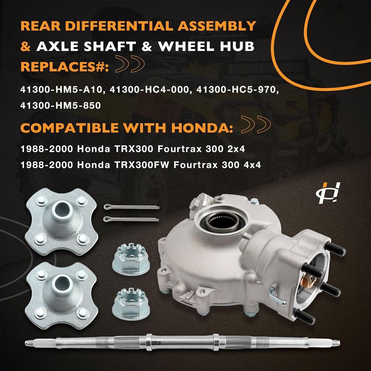 ?FITMENT?The rear differential axle kit compatible with 1992-2000 Honda TRX300FW Fourtrax 300 4x4. Replaces# 41300-HM5-A10, 41300-HC4-000, 41300-HC5-970, 41300-HM5-850, 42310-HC4-000, 42310-HC5-970