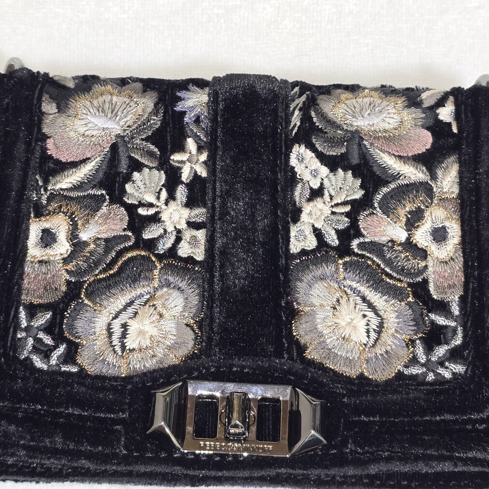- Rebecca Minkoff Black Velvet Embroidered Floral Love Crossbody Clutch Bag READ