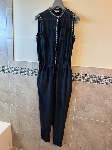 - REBECCA TAYLOR Black Silk Jumpsuit Pinhead Detail SZ 6 NWOT