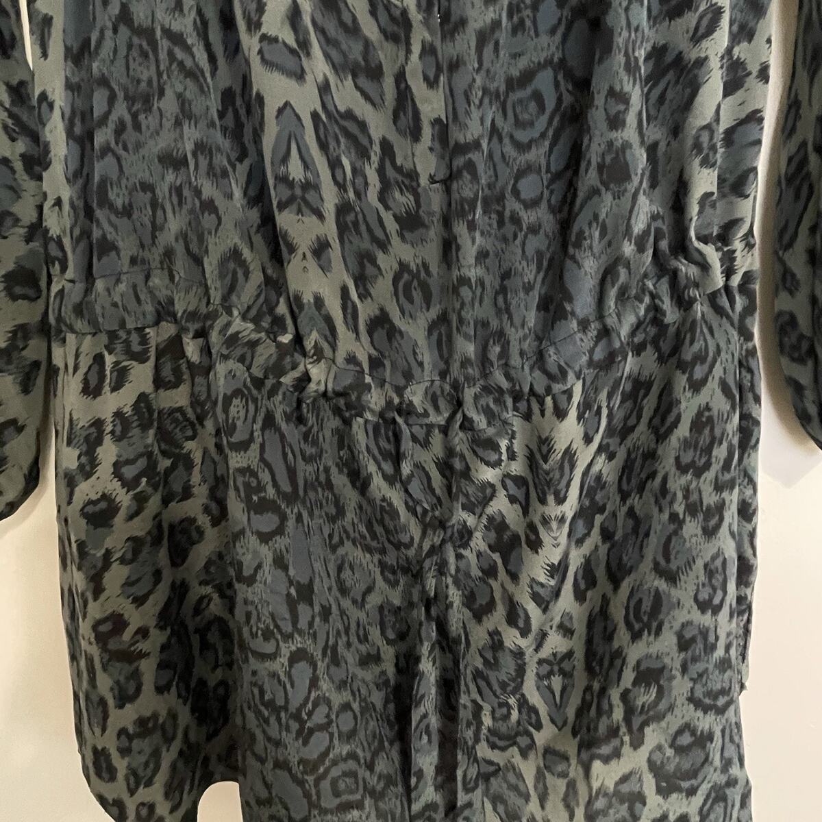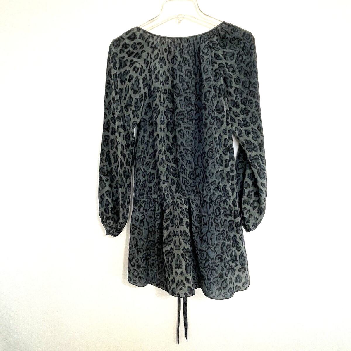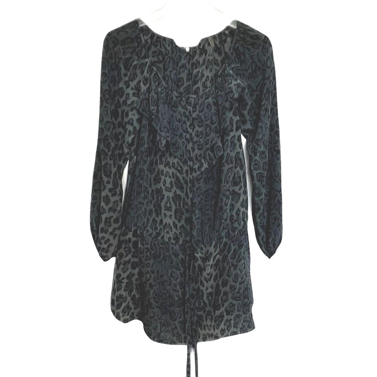 - Rebecca Taylor Silk Leopard Print Mini Dress Size 2 Storm Cat Gray Belt Ruffles