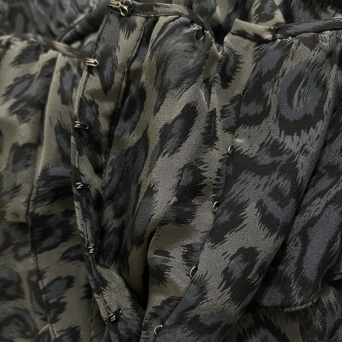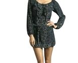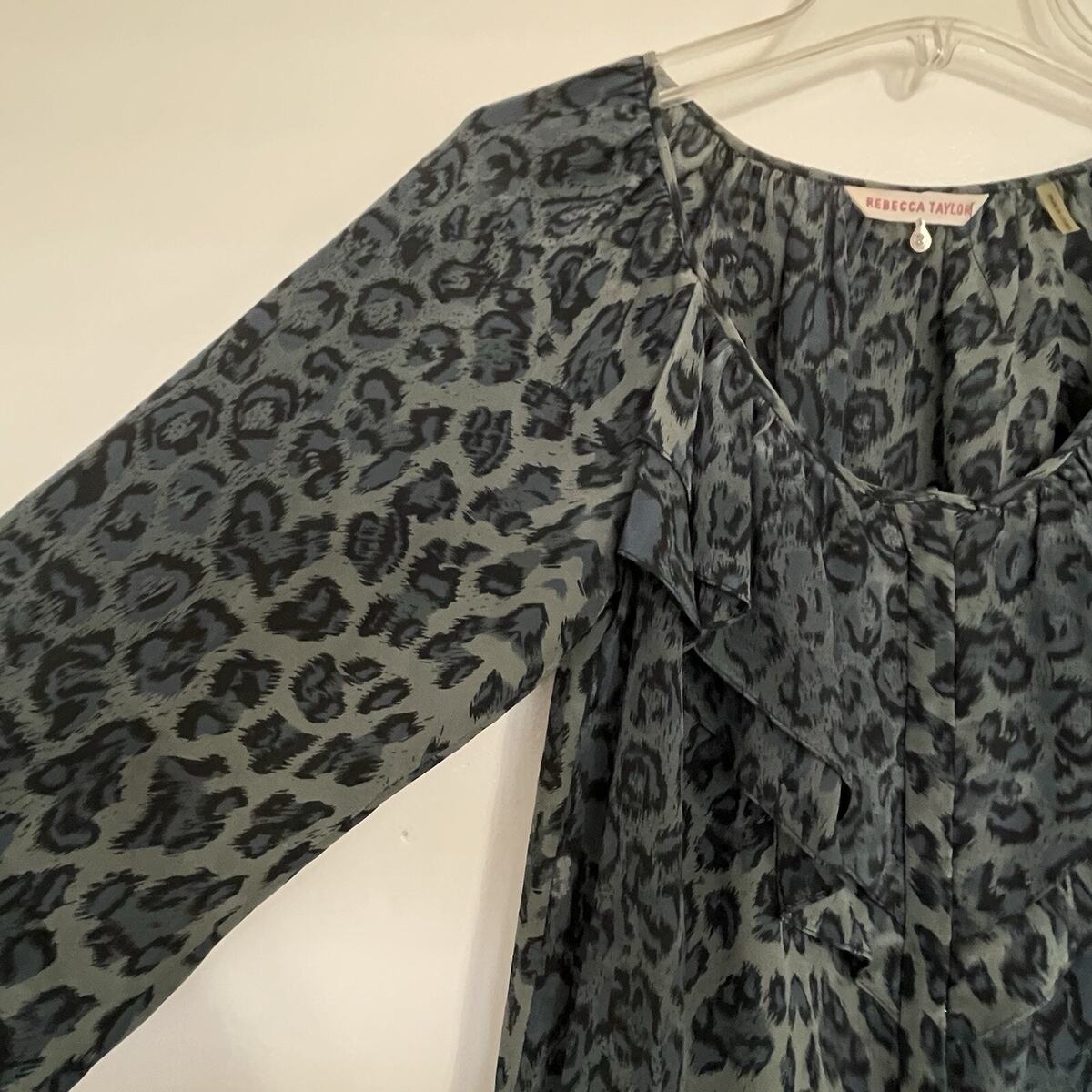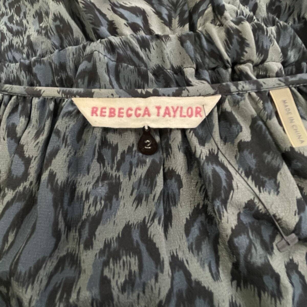 - Rebecca Taylor Silk Leopard Print Mini Dress Size 2 Storm Cat Gray Belt Ruffles