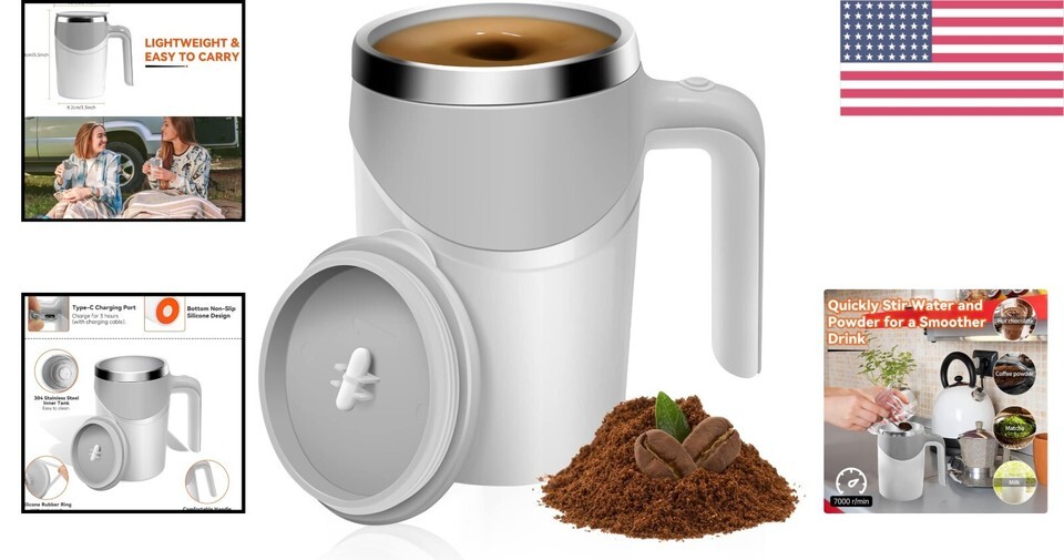 Rechargeable Self-Stirring Coffee Mug - Insulated Stainless Steel for On-the-Go
