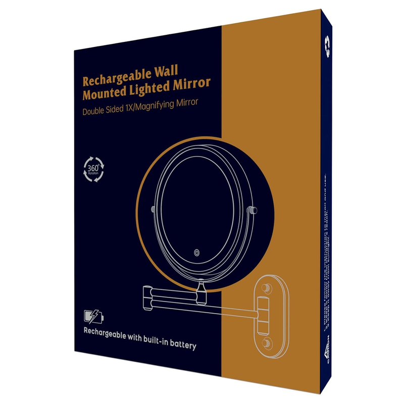 - Rechargeable Wall Mounted Lighted Makeup Vanity Mirror 8 Inch Double Sided 1X 10