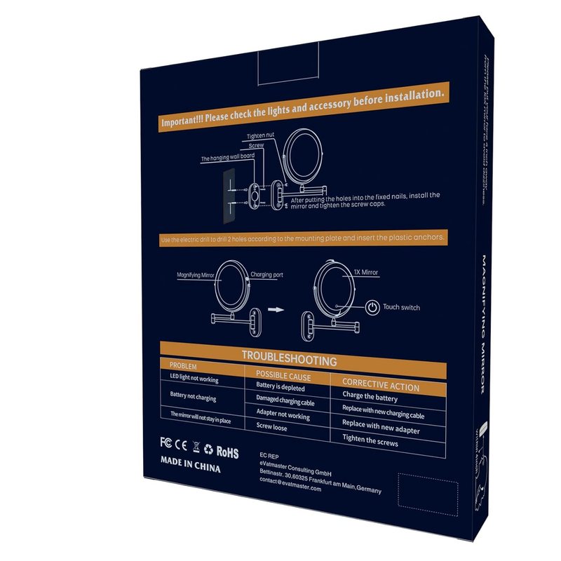 ???? ???????? ?????????? ???:The lighted makeup mirror with magnification is mounted on the wall, designed with a extendable arm. 360 degree free rotation provides you with a comfortable viewing angle when putting on makeup, shaving or wearing contact lenses. It can be folded against the wall to save space when not in use