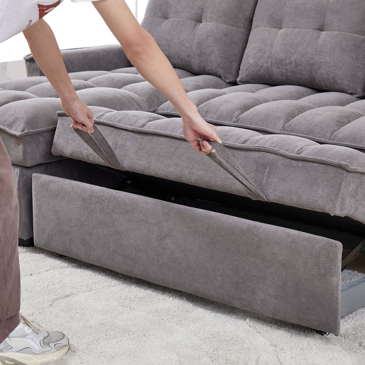 a?? STORAGE SPACE: The sleeper sofa has a hidden storage space underneath the chaise area and side storage pockets that provide an extra area for blankets, pillows, magazines, remotes or other items. This remarkable feature makes it an exceptional choice for those with limited storage space in their home.