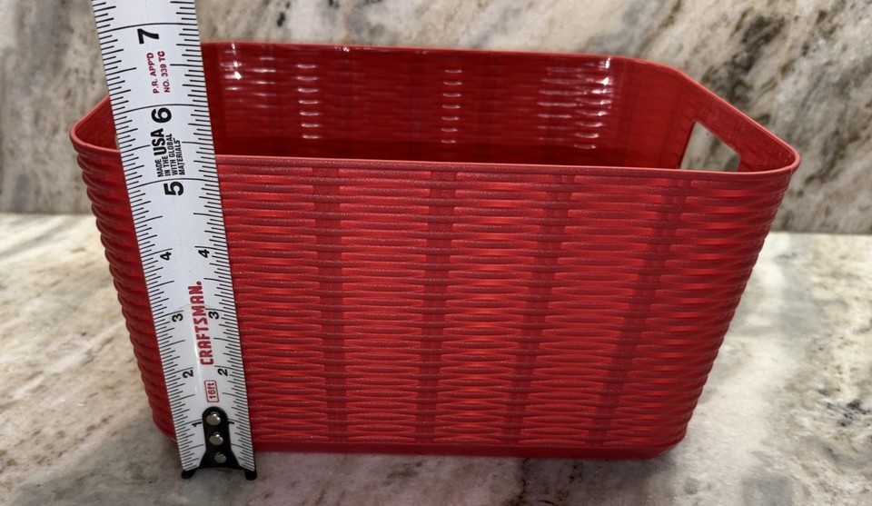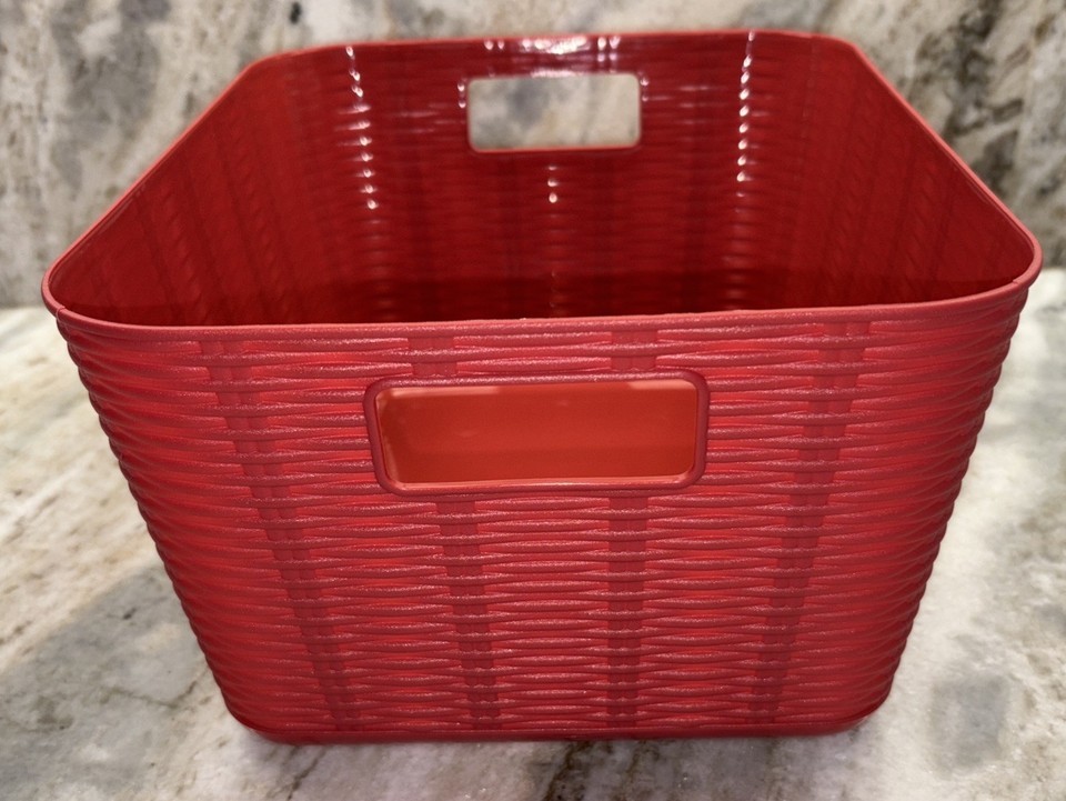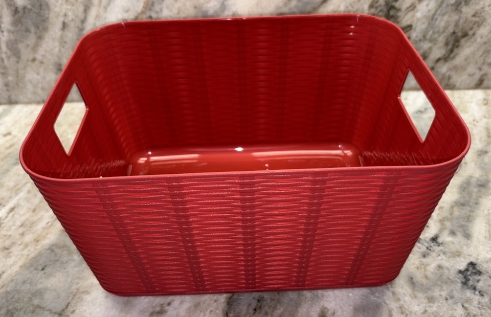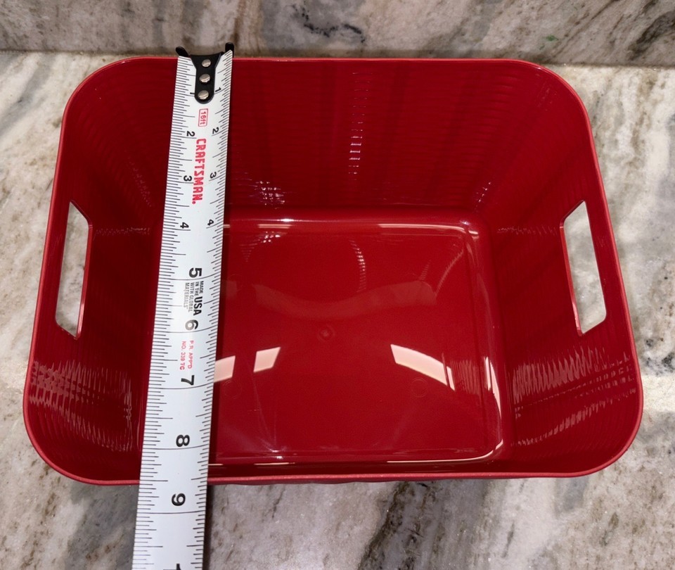 - Rectangle Red Plastic Storage Tub Container Basket W Handle 5.5Hx10.5Lx8.5”W-NEW
