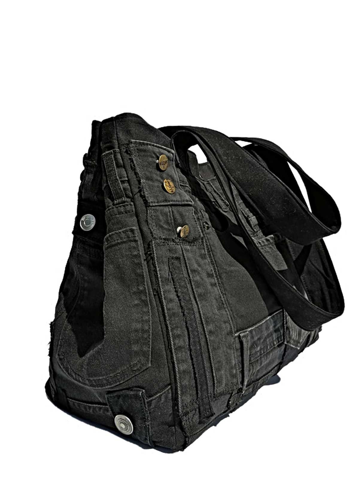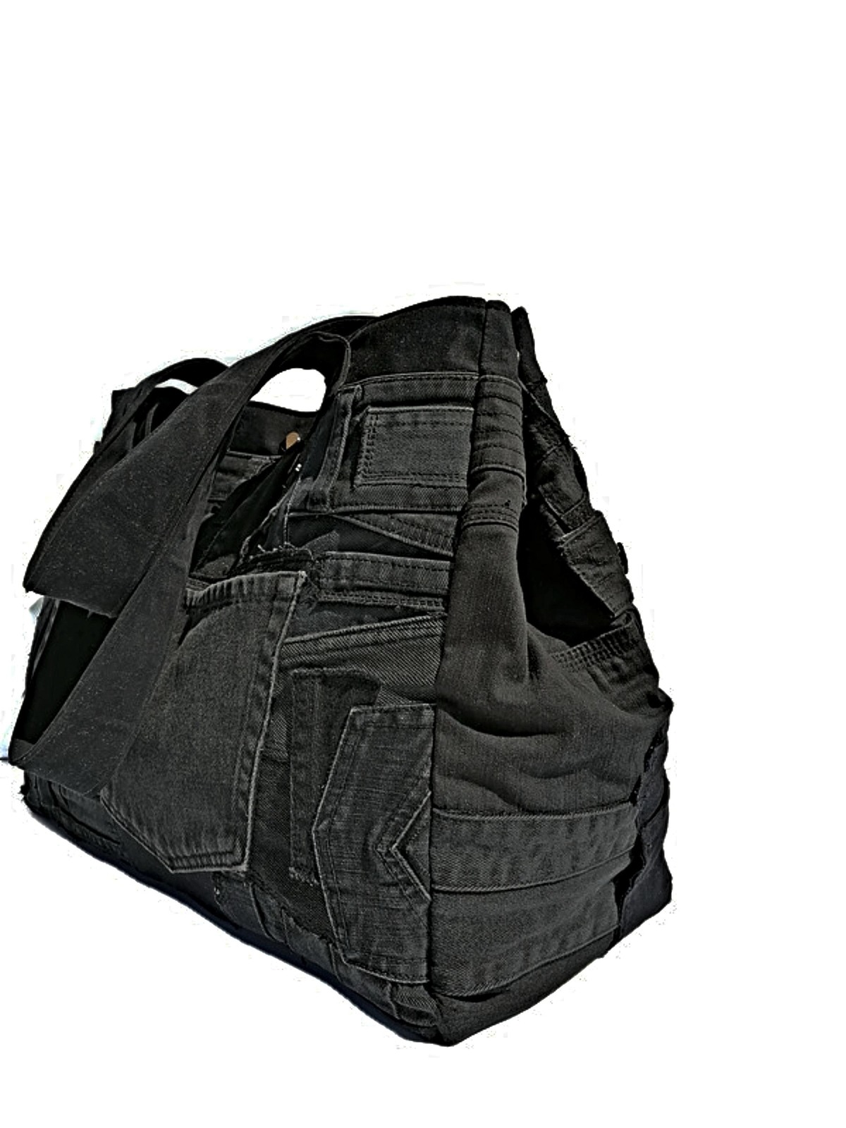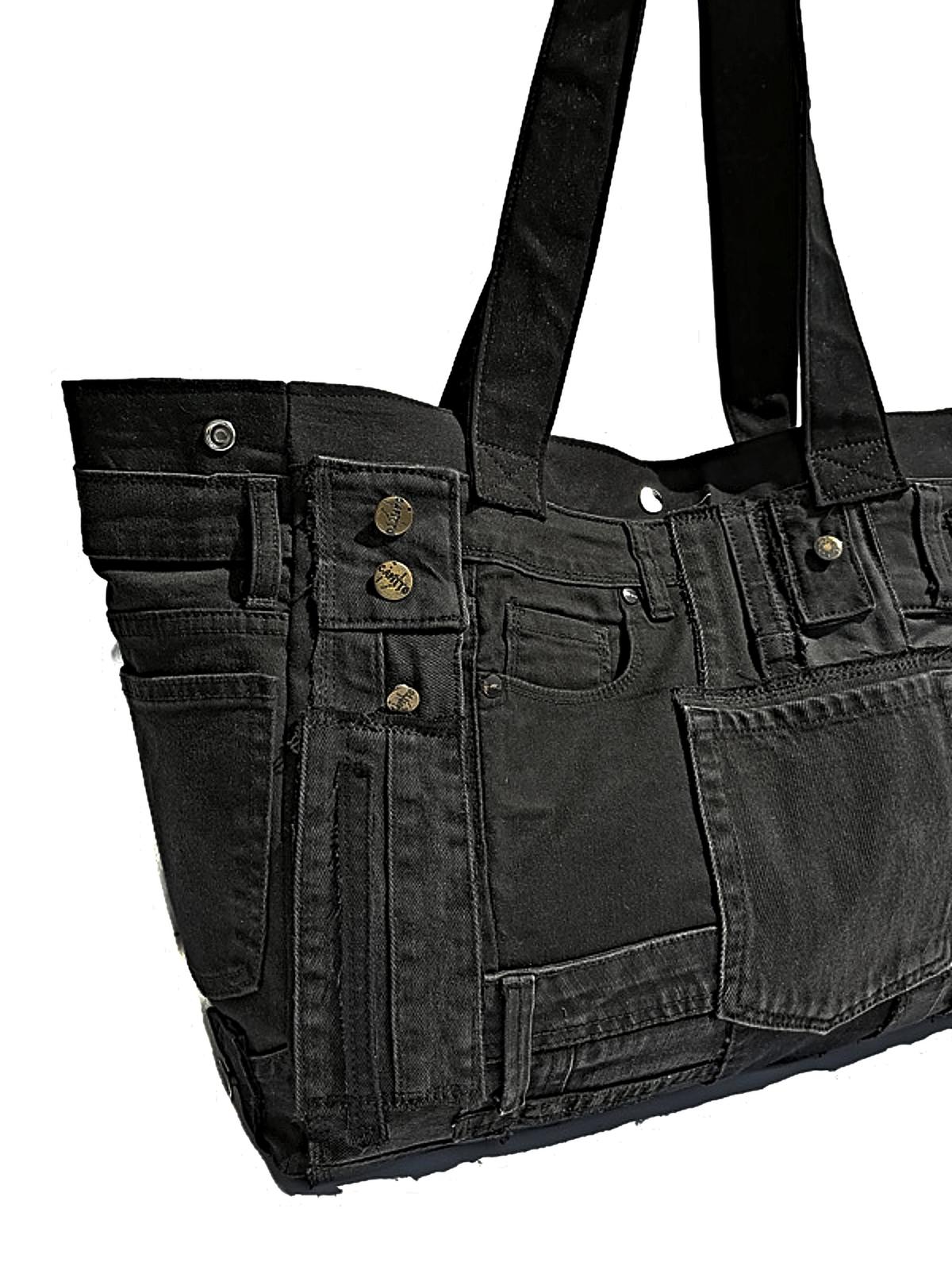 - Recycled Black Denim Tote Bag: Large Jeans Handbag
