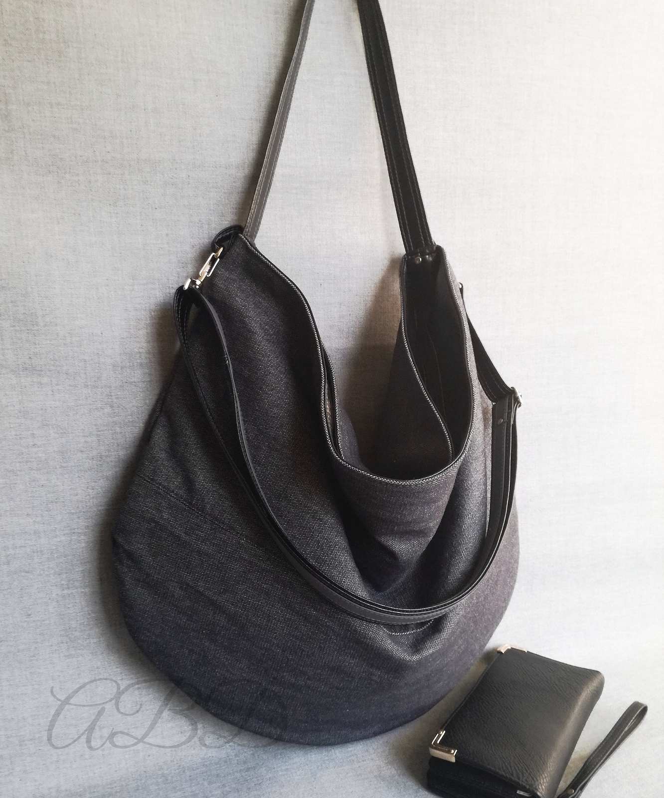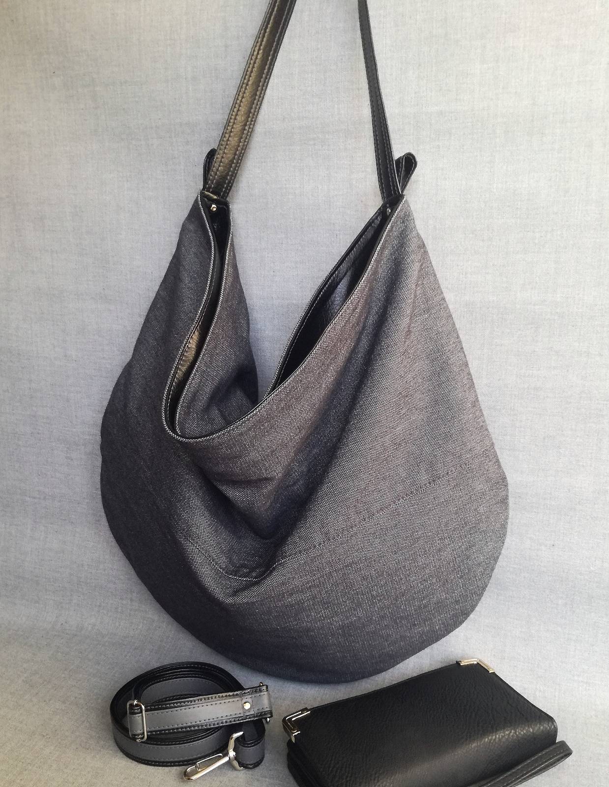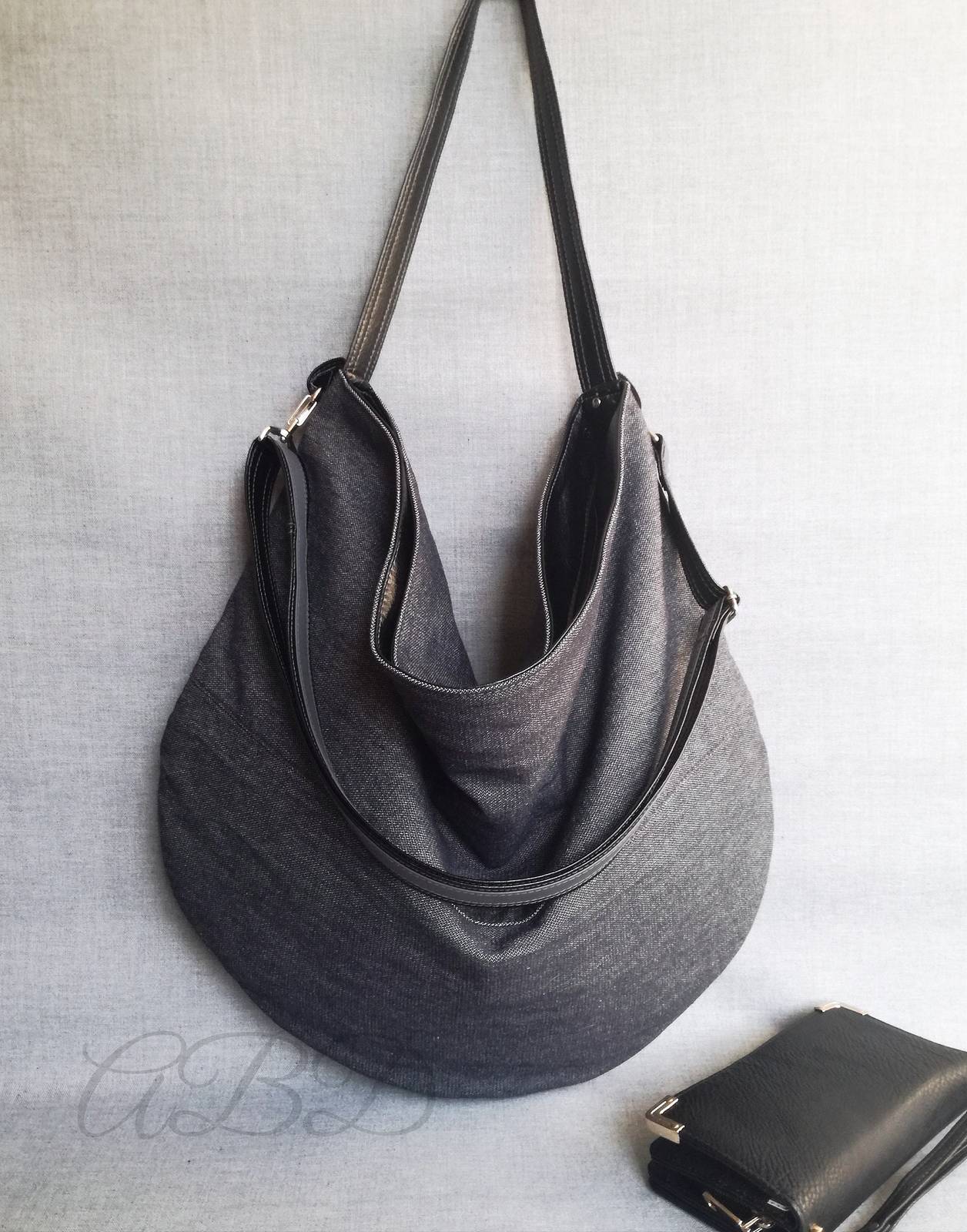 - Recycled Grey Denim Hobo Bag: Slouchy Shoulder Purse with Adjustable Strap