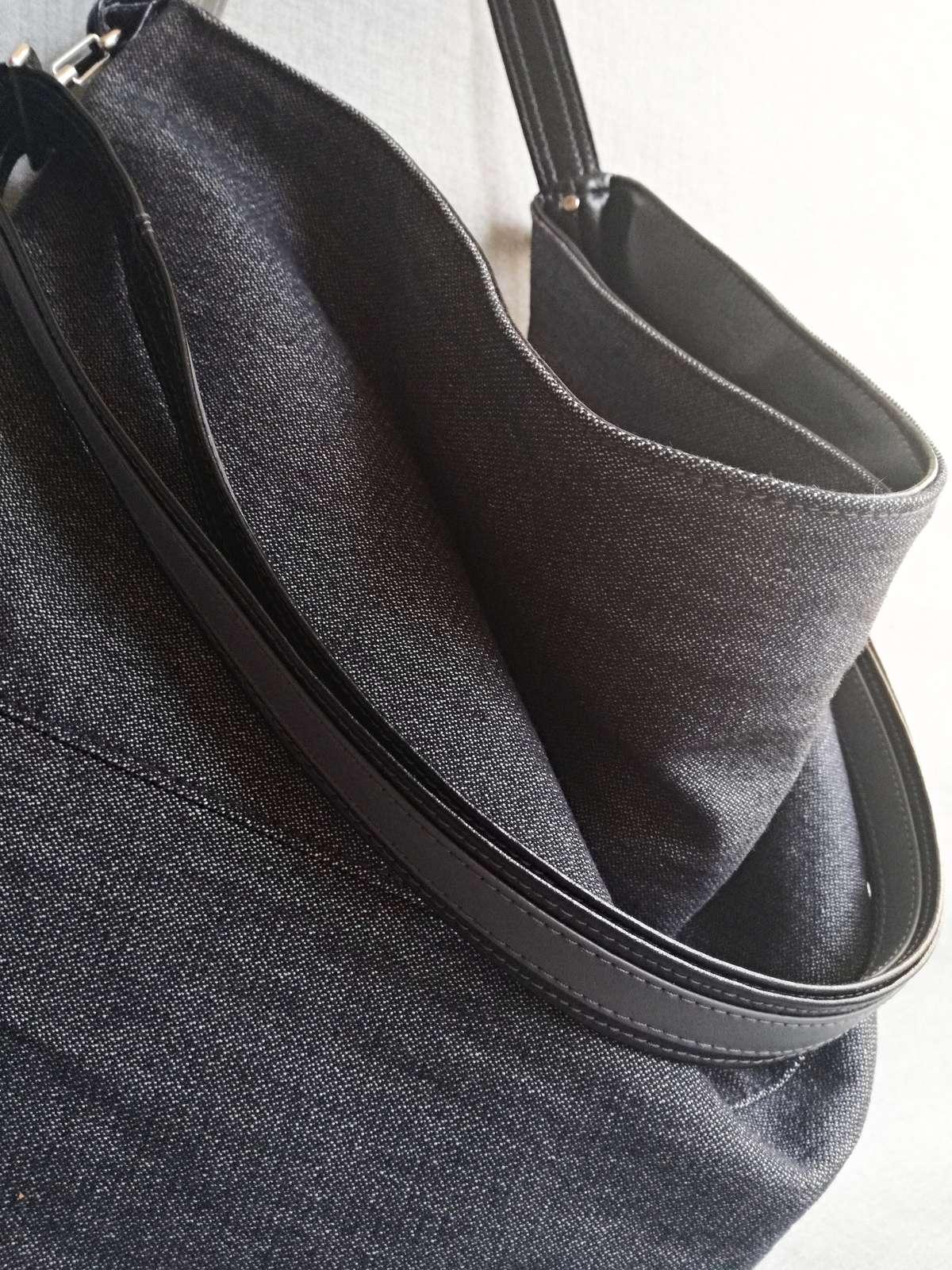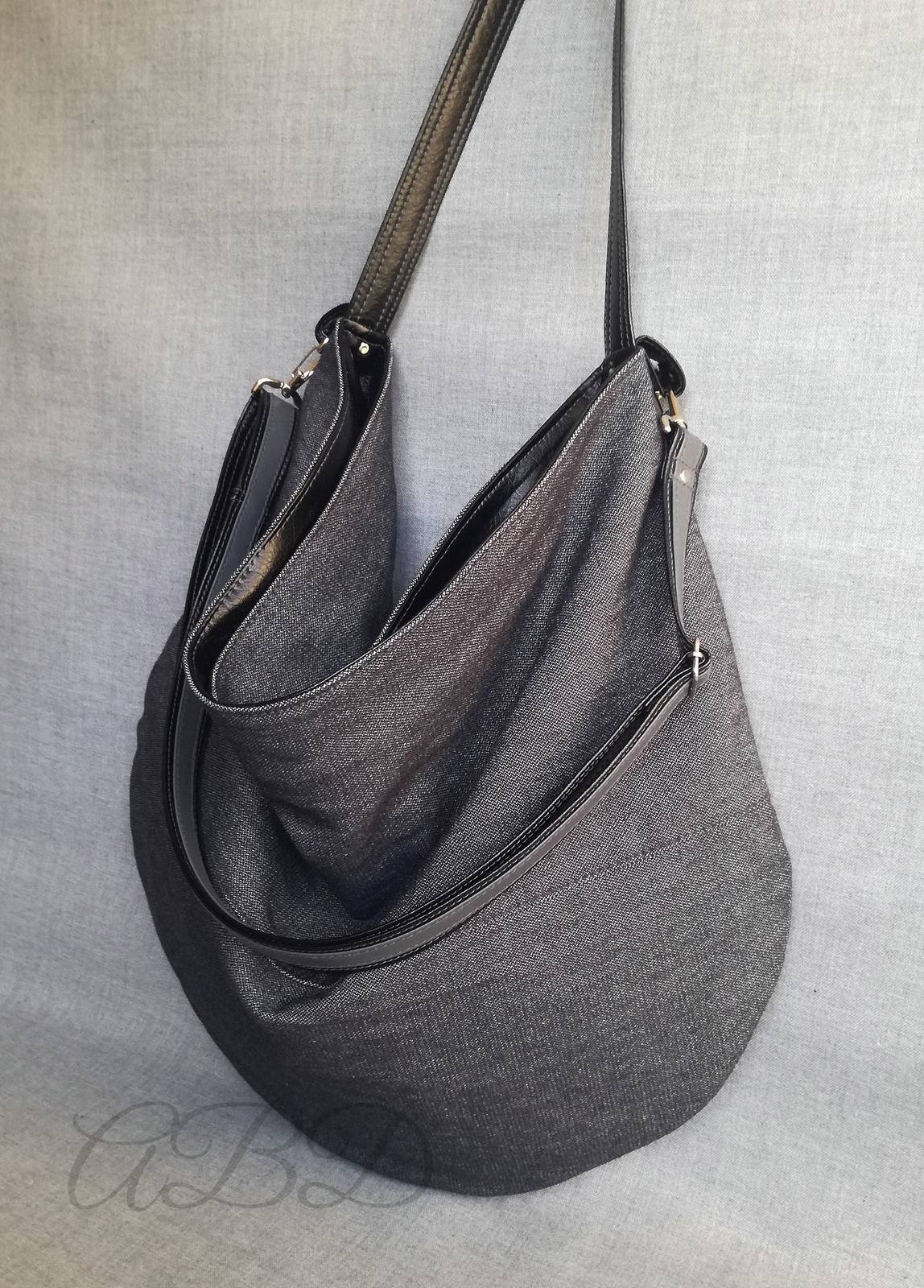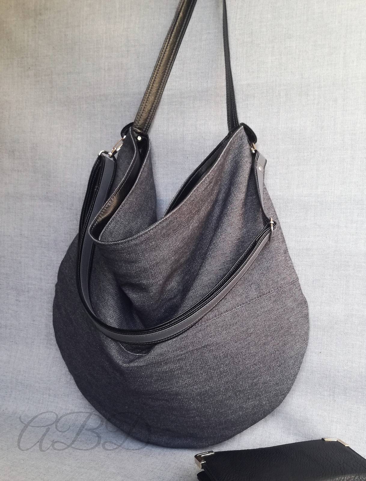 - Recycled Grey Denim Hobo Bag: Slouchy Shoulder Purse with Adjustable Strap