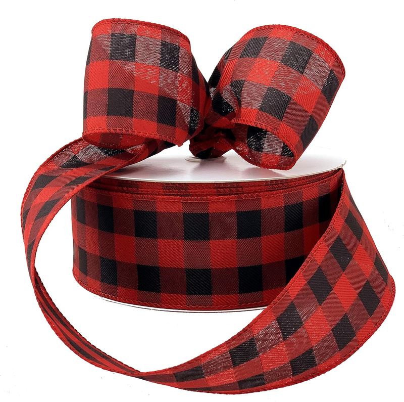 - Red Black Buffalo Plaid Ribbon - 2 1/2" X 50 Yards, Check Christmas Ribbon