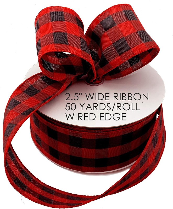 Ribbon for Gift Wrapping - Christmas Buffalo Check Plaid ribbon with wire edges in a roll 2.5 inch wide by 50 yds for all your holiday craft and Christmas Decorations